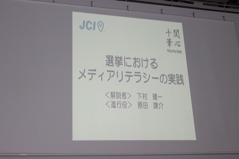 三部では『選挙におけるメディアリテラシーの実践』と題し、引続き進行役に原田氏、解説者に下村氏に今まで講義して頂いた話をもとに『選挙』について考えました。また、グループディスカッションや質問の時間もあり有意義な参加者にとって有意義な講演となっていました。
