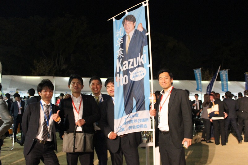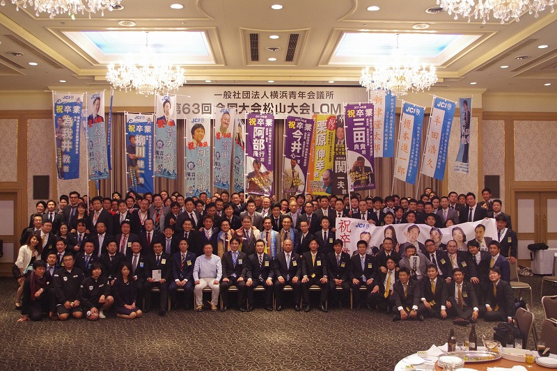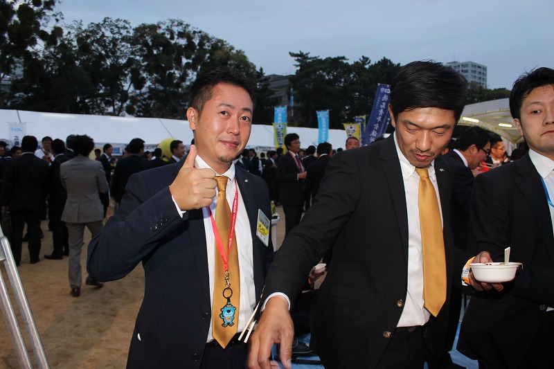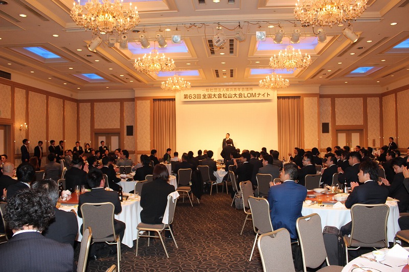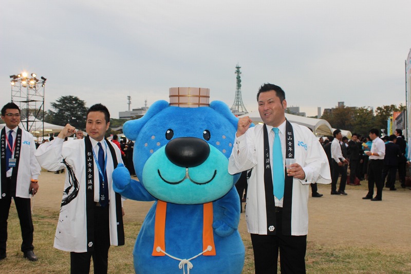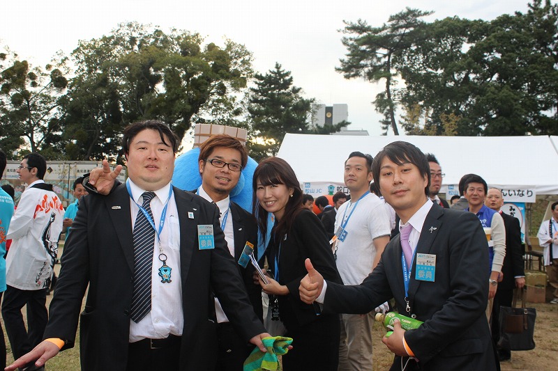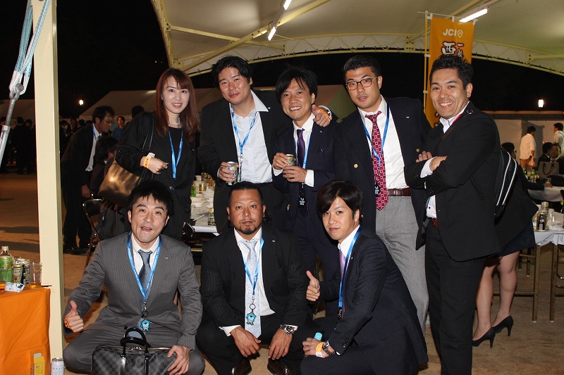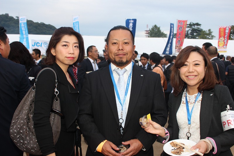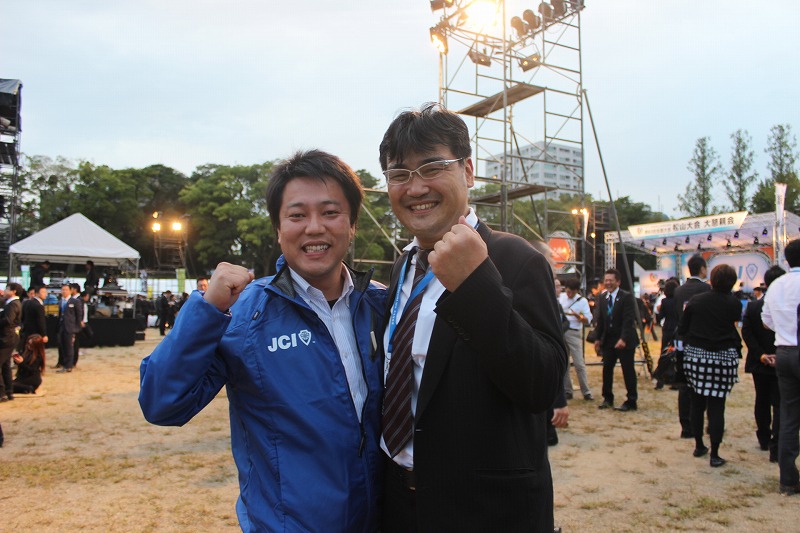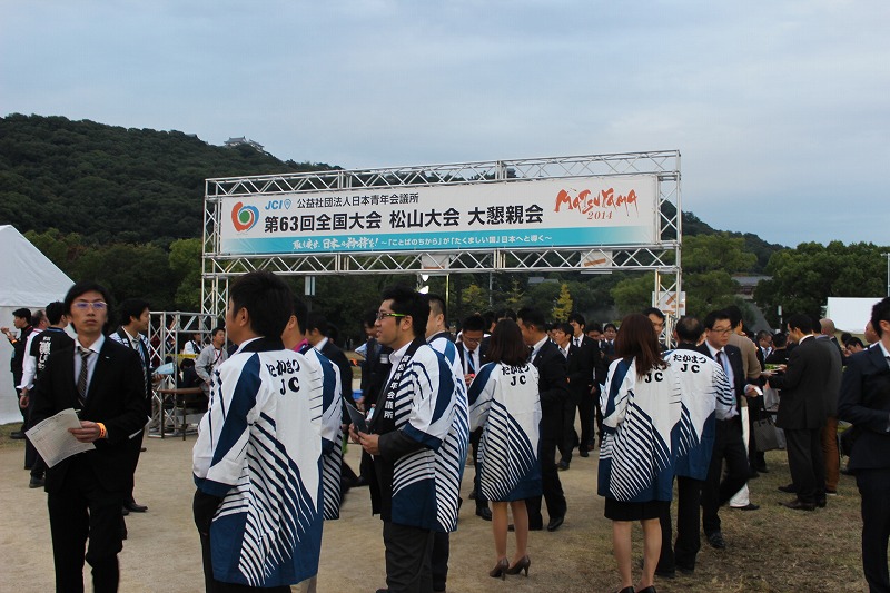 愛媛県松山市城山公園~堀之内~(ふれあい広場)にて第63回全国大会松山大会の大懇親会を開催しました。主管LOMである公益社団法人松山青年会議所第62代理事長西村直樹君の開会宣言ではじまり、多くの日本青年会議所各地会員会議所メンバーが参加しました。