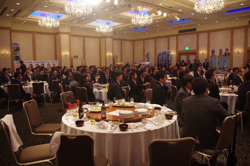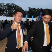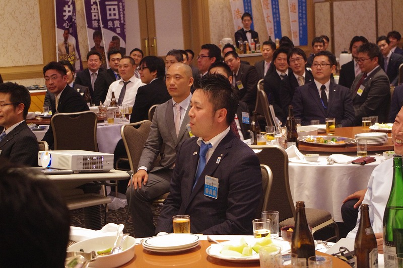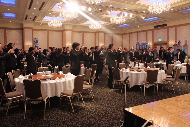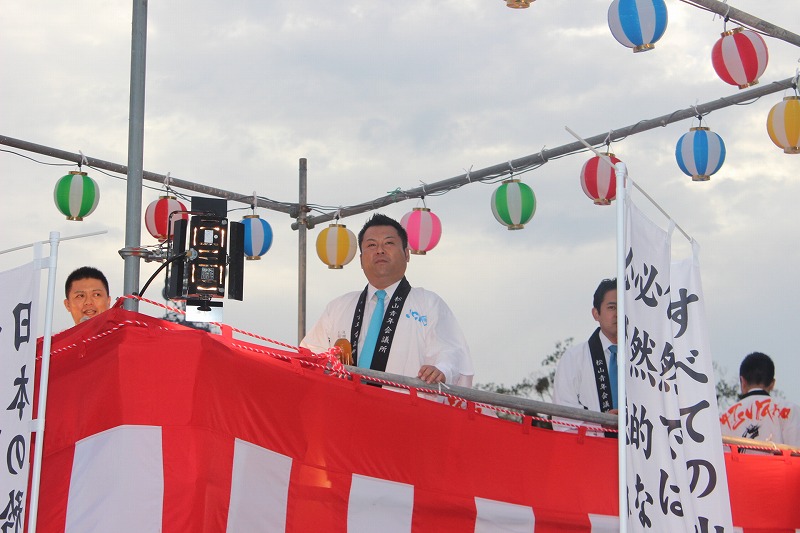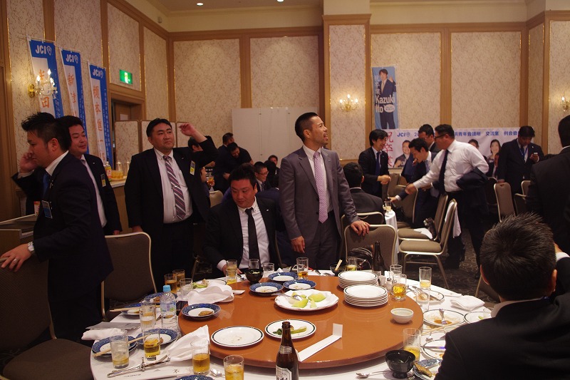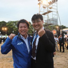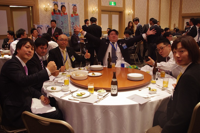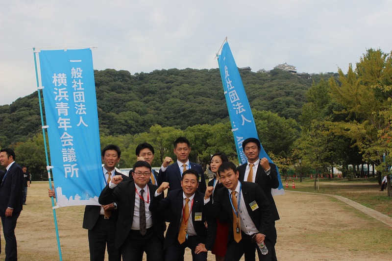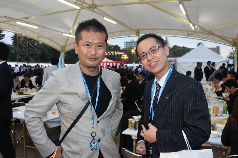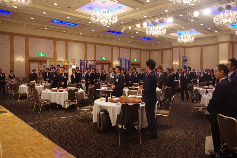 愛媛県松山市城山公園~堀之内~(ふれあい広場)にて第63回全国大会松山大会の大懇親会を開催しました。主管LOMである公益社団法人松山青年会議所第62代理事長西村直樹君の開会宣言ではじまり、多くの日本青年会議所各地会員会議所メンバーが参加しました。