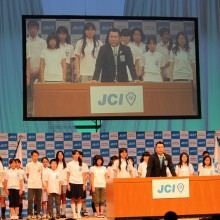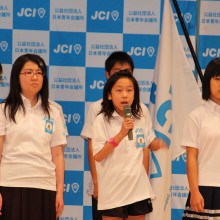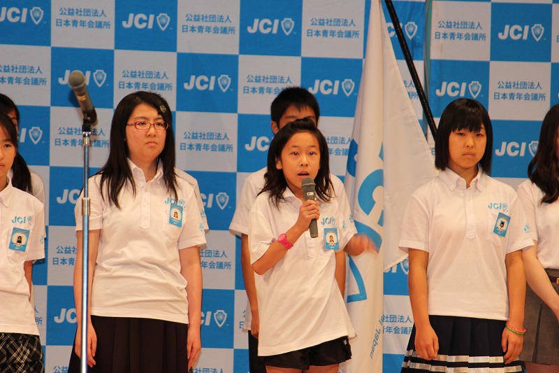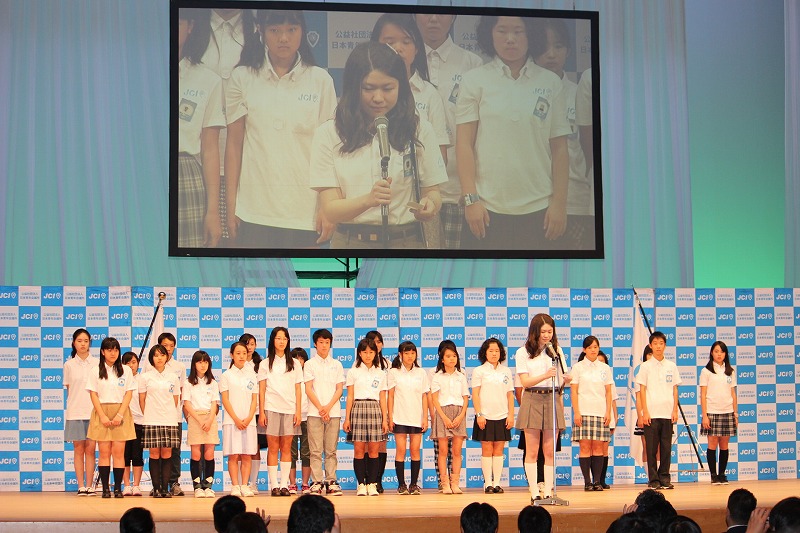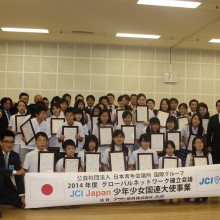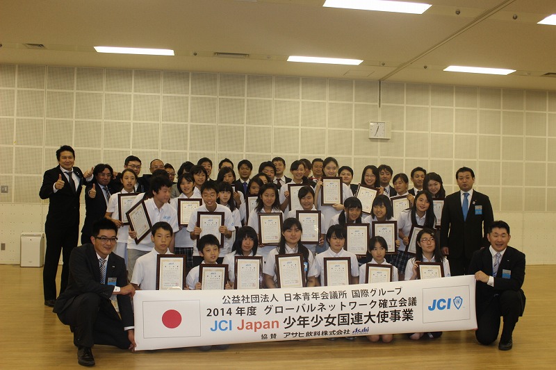 国内および海外(ニューヨーク)での研修を通してUN MDGs(国連ミレニアム開発目標)について理解を深め、少年少女国連大使として国内各地でUN MDGsを広げていく啓もう活動の成果報告と、大使としての力強い決意の言葉が述べられ、公益社団法人日本青年会議所2014年度 会頭 鈴木和也君より修了証書を授与致しました。