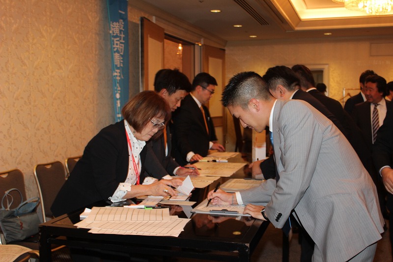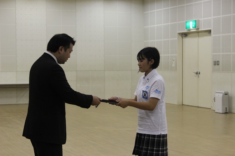 少年少女国連大使修了式の後、各個人に修了証書を授与致を手渡しました。