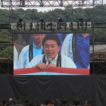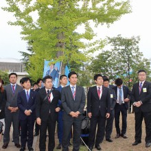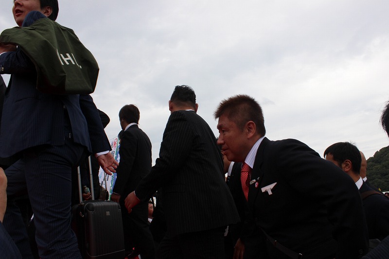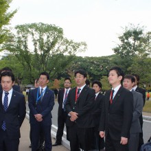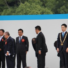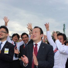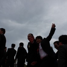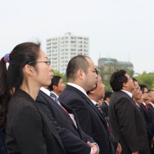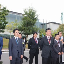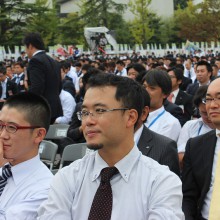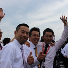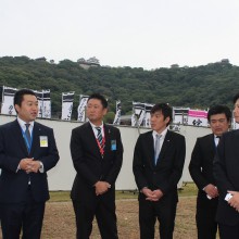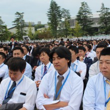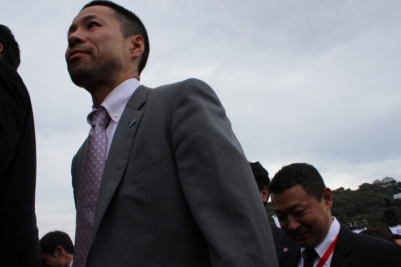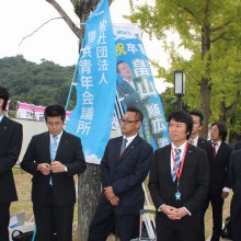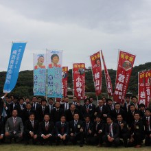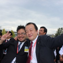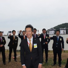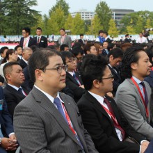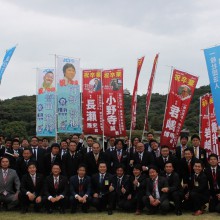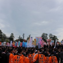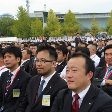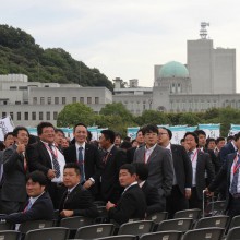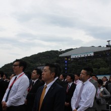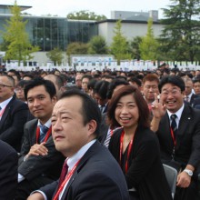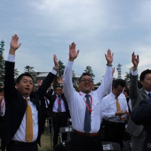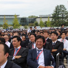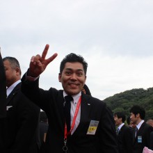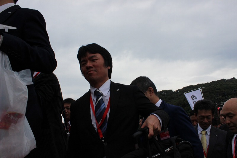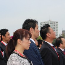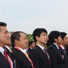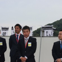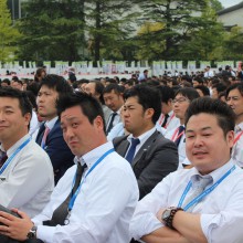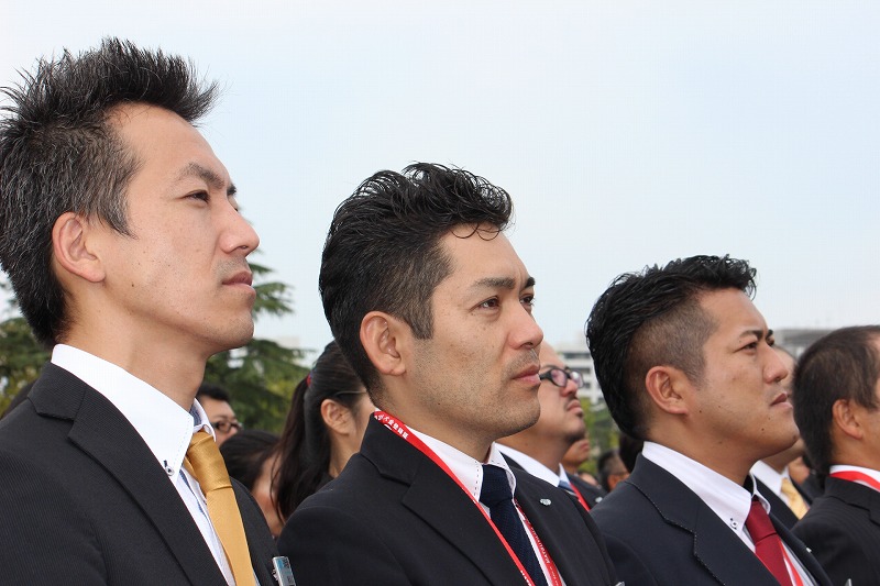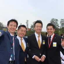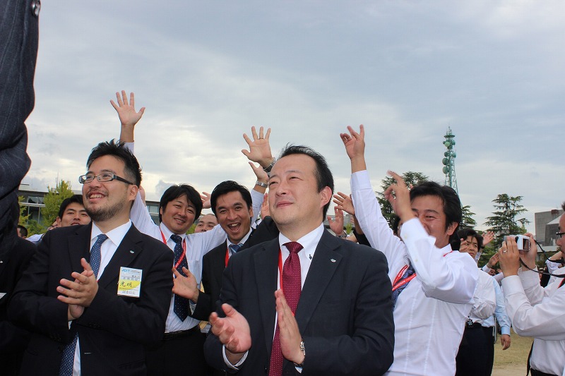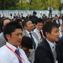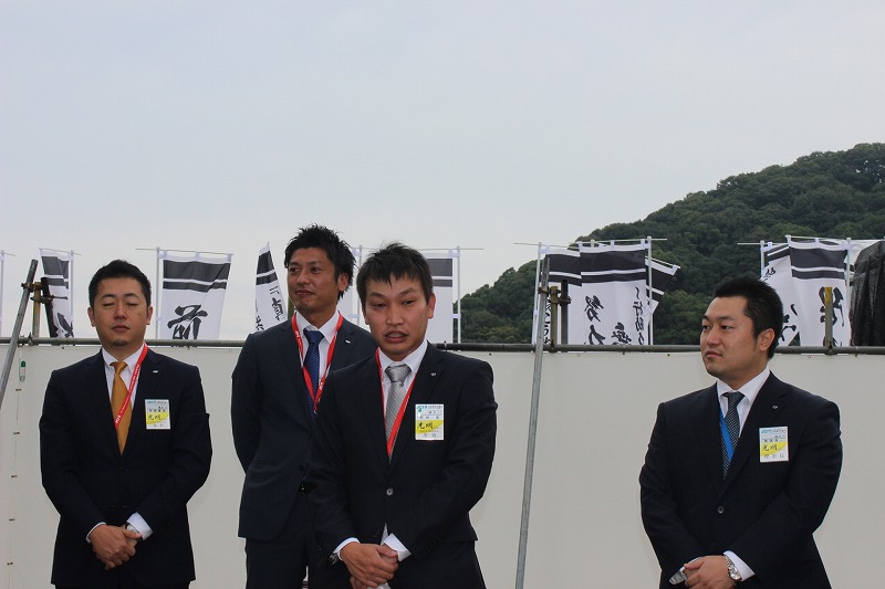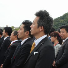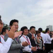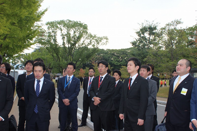 愛媛県松山市城山公園~堀之内~(ふれあい広場)にて第63回全国大会松山大会の大会式典を開催しました。会頭鈴木和也君によるメインスピーチにおいて、本年度の総括が行われました。その後歴代会頭による第65代会頭予定者 柴田剛介君へのプレジデンシャルリースの伝達、公益社団法人松山青年会議所より公益社団法人八戸青年会議所への第64回全国大会東北八戸大会への「大会の鍵」の伝達が行われました。