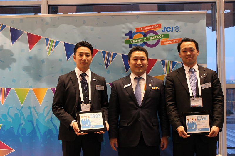 総会3においてJCIに副会頭として出向している稲葉崇浩法制顧問と小俣順一渉外顧問がファンデーションで、髙山剛君と三井寿浩君がグランドスラムを達成し表彰されました。