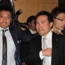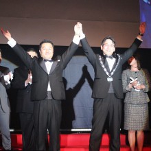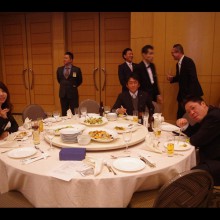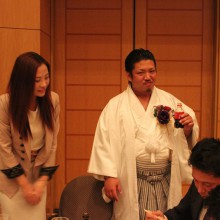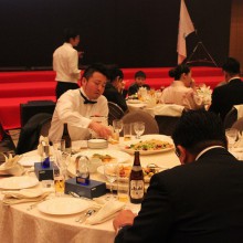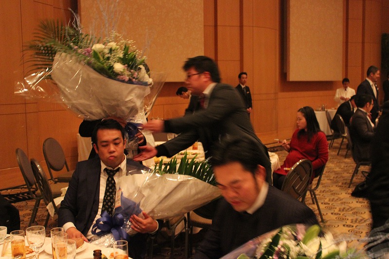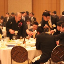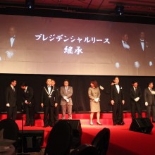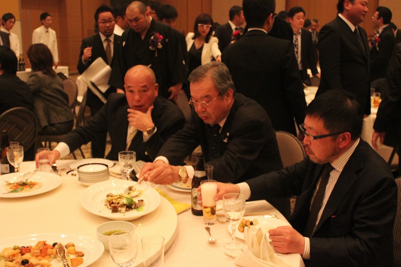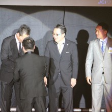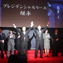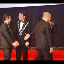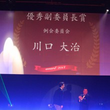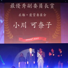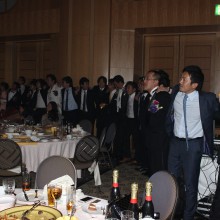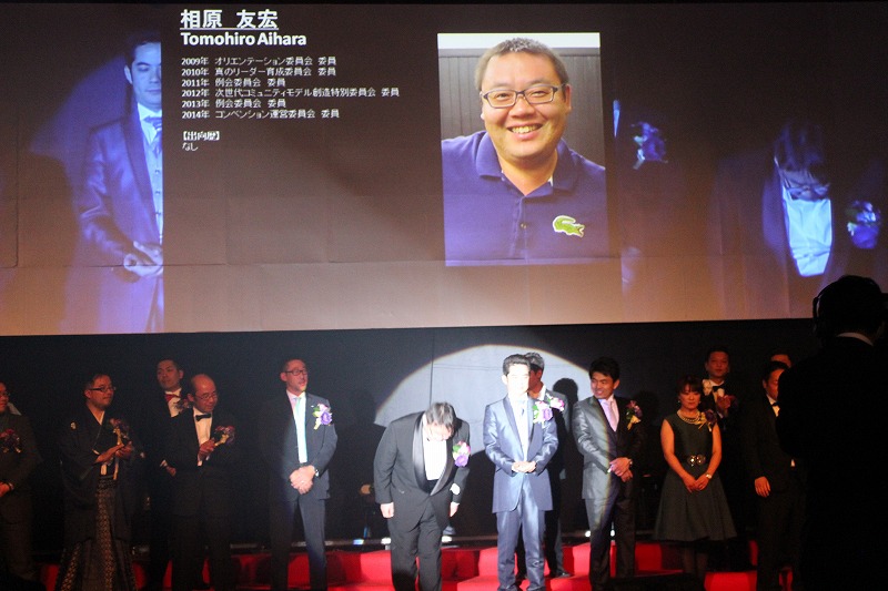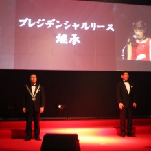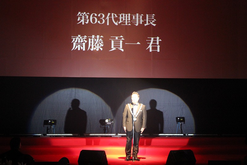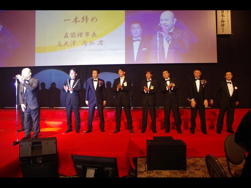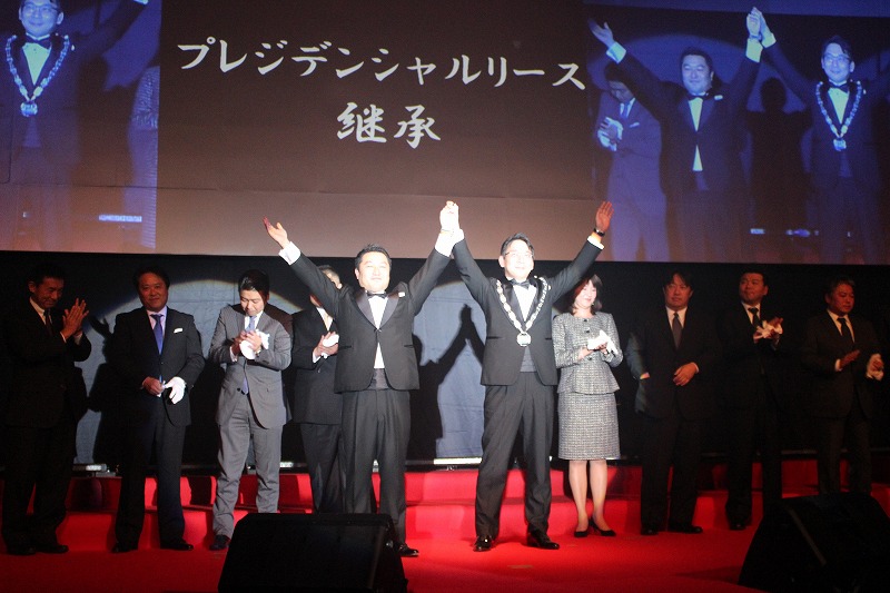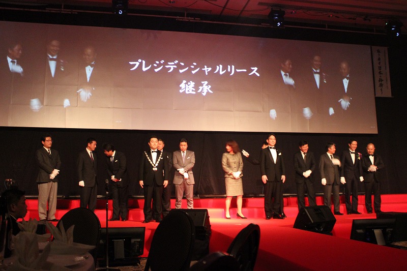 プレジデンシャルリースの継承では歴代理事長の方々も登壇され、楽しくも厳かに行われました。2014年度齋藤理事長からの挨拶では、本年度の熱い思い出が蘇り、非常に熱いスピーチをいただきました。現役の代表として2015年度稲葉理事長候補者から送辞が、卒業生代表として半田財政顧問から答辞がなされました。