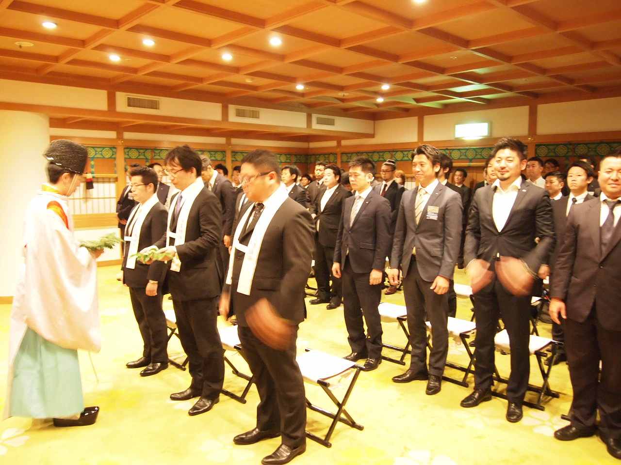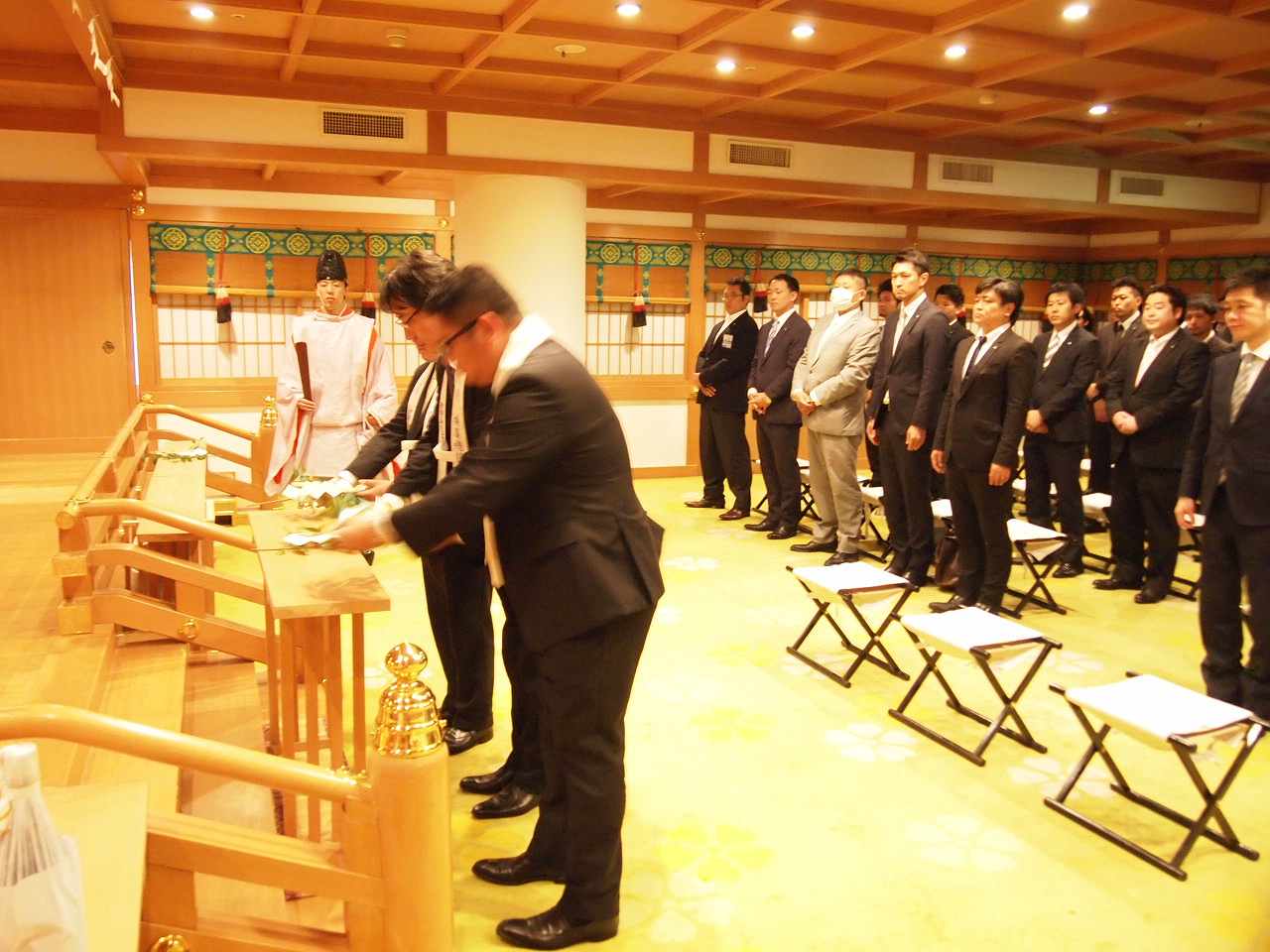第34回横浜開港祭の会期中の晴天と無事故を祈願する晴天祈願祭が伊勢山皇大神宮新宮殿(横浜市西区)にて執り行われ、横浜開港祭室をはじめ、正副理事長、理事者が参加しました。