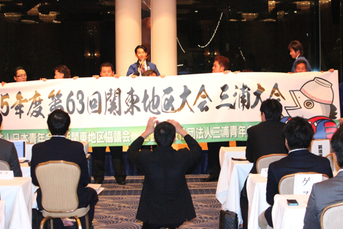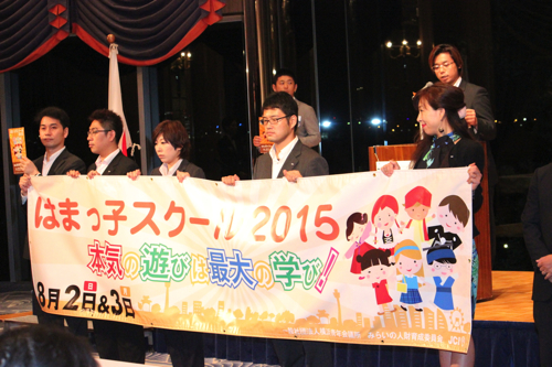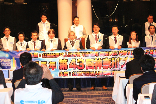 講演の後は「サマーコンファレンス2015」,「第63回関東地区大会三浦大会」,「第43回神奈川ブロック大会」に関するPR,横浜青年会議所の事業である「はまっ子スクール2015」の事業PRが行われ,日本青年会議所に出向中の吉田滋一君からは出向状況の報告がありました。