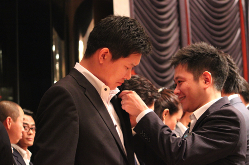また新たに横浜青年会議所に入会したメンバーに対してバッチ授与が行われました。
