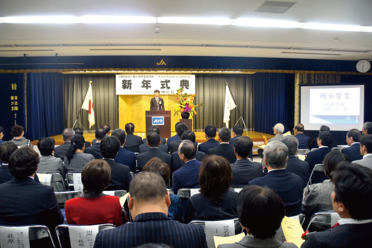 1月12日(火)公益社団法人茅ヶ崎青年会議所の2016年度「新年式典」に参加させて頂き、第49代岩澤あゆみ理事長にご挨拶をさせて頂きました。スローガン 光輝花冠(こうきかかん)