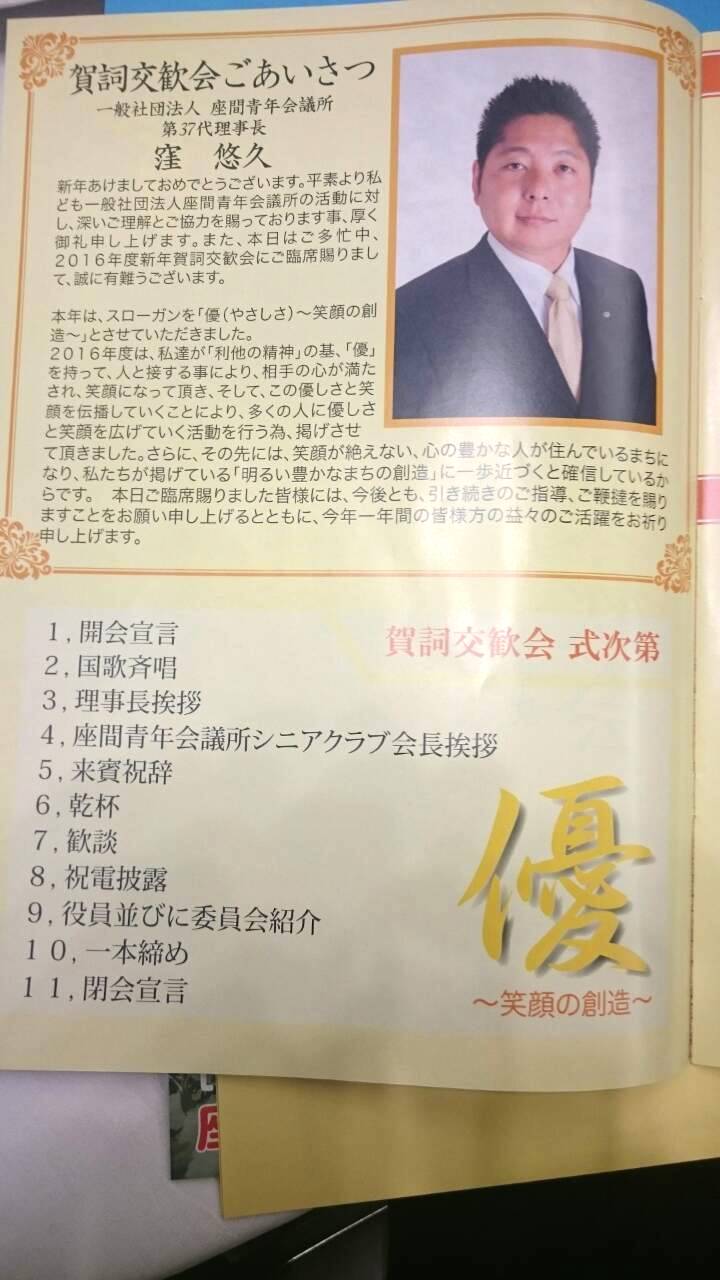一般社団法人 座間青年会議所の「新年賀詞交歓会」に参加させて頂き、第37代理事長 窪 悠久君にご挨拶させて頂きました。