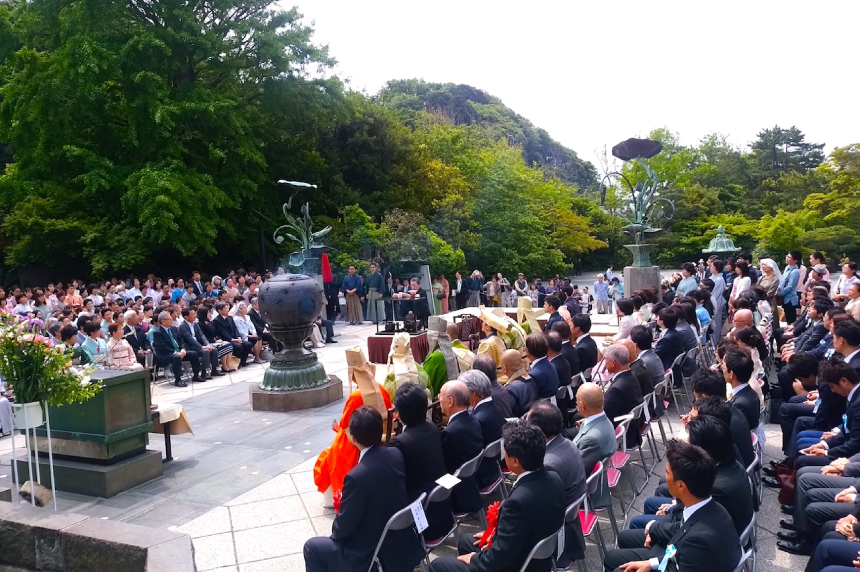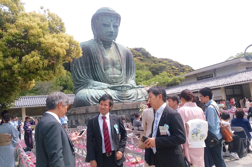 5月14日(土)鎌倉高徳院にて(公社)鎌倉青年会議所主催で第48回鎌倉大仏慈善茶会が開催され殿内理事長、青苔会杉浦会長が参加されました。坐忘斎千宗室お家元が献茶式にて鎌倉大仏に献茶され、その他3席のお茶席が開かれ、鎌倉づくしの点心が振舞われました。