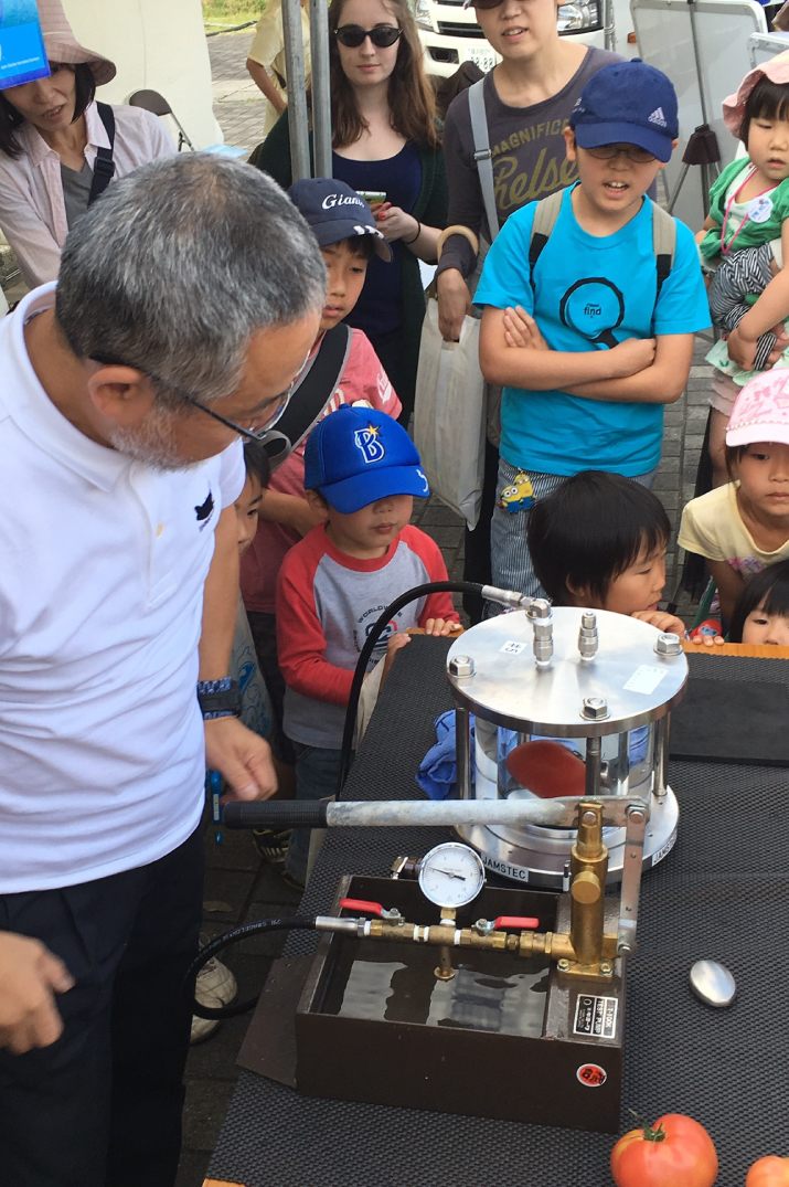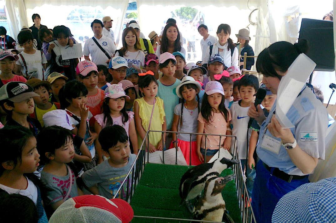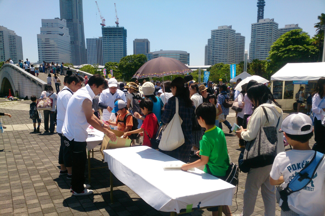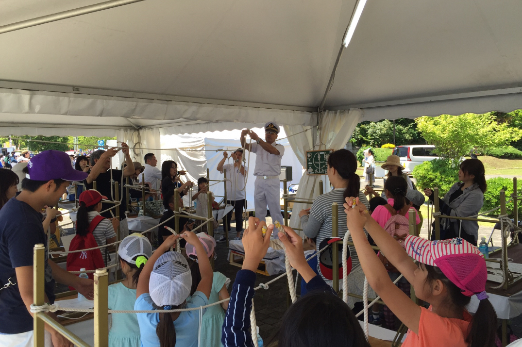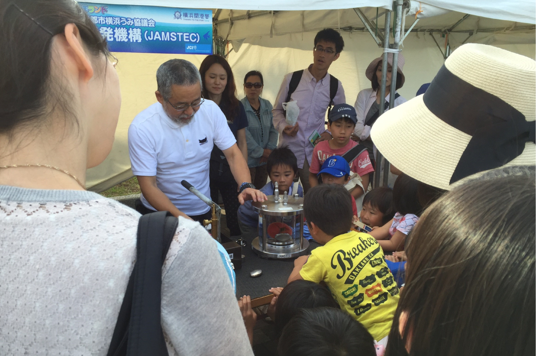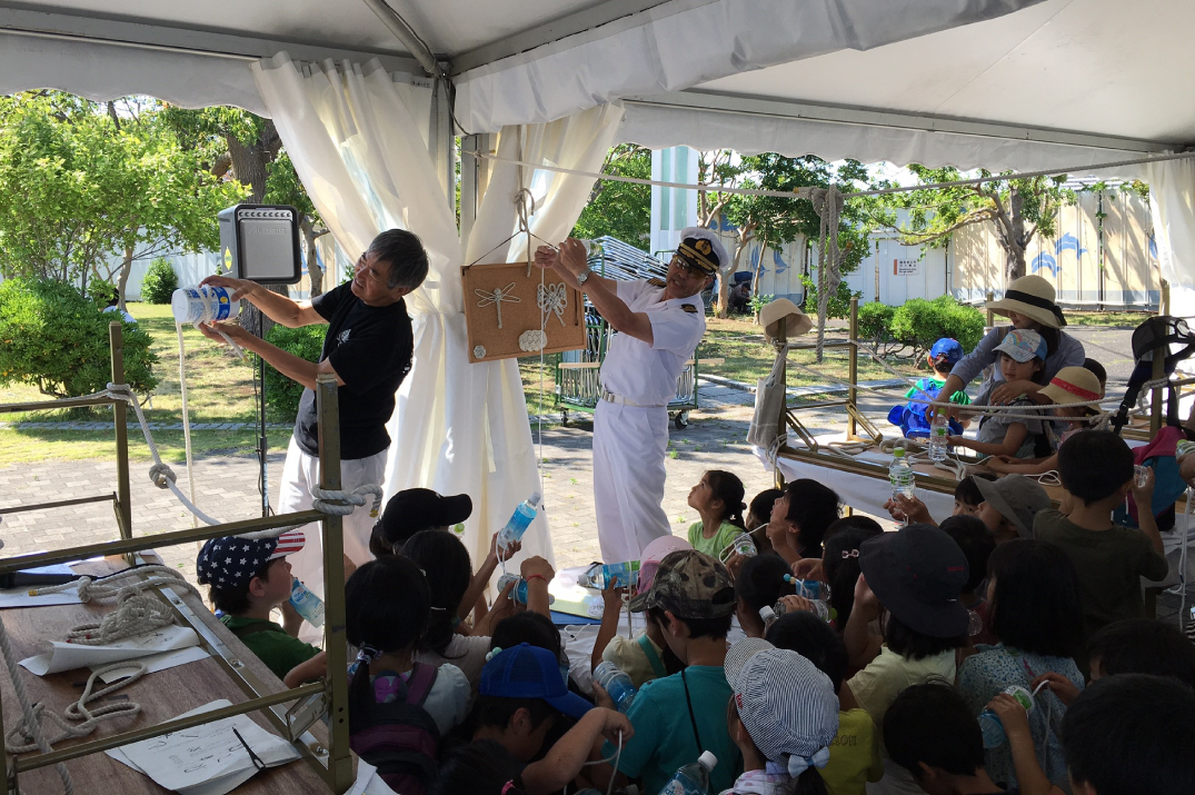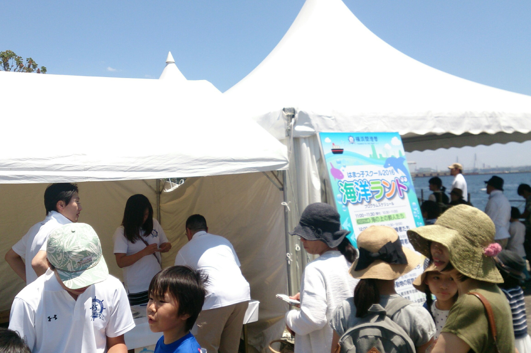 「はまっ子スクール2016~海洋ランド~」を第35回横浜開港祭期間中に臨港パーク潮入の池周辺にて開催致しました。参加対象者は第35回横浜開港祭に来場頂いた小・中・高校生と致しました。子供達をまち全体で育む、横浜市の「オール横浜」の考えに賛同し、また海洋に関する教育・普及活動の活性化を図る海洋都市横浜うみ協議会の協力の元、公益財団法人帆船日本丸記念財団、国立研究開発法人海洋研究開発機構(JAMSTEC)、横浜・八景島シーパラダイスの3団体様と委員会メンバーで、海洋を職業のフィールドとしている方の生きた知識や技術を子供達に楽しく学んで貰うワークショップ事業を行いました。子供達にとって日本丸のキャプテンや甲板長から学んだ洋上を旅する為のルールであるロープワークは、日常では体験できない事でした。JAMSTECの研究成果が詰まった「海と地球のかべ新聞」を使ったクイズ大会では、子供達は大変な吸収力でクイズを回答していました。また深海6,000mを再現する圧力実験機でのデモンストレーションに子供達のみならず、親達も魅了されていました。横浜・八景島シーパラダイスからは移動式水族館と言える活魚車をご用意頂き、飼育員様の海洋動物の育て方やコミュニケーションの取り方や、飼育員という夢の職業について講演頂き、ペンギン2羽のサプライズ登場で子供達を大いに沸かせる事が出来ました。事業全体を通じ、各プログラム全て定員に達し、参加した子供達にとって海洋に関する知の世界を広げる出発点となりました。本事業での思い出が、いつしか人生を豊かにする原動力になると願っております。