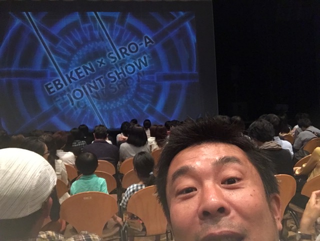 第一部は「AI(人工知能)」をテーマにしたストーリーで、2116年の世界が人工知能に乗っ取られ、人間を排除していくという演目。SIRO-Aが人間を排除するAIを持ったロボット役、人間の父子の一人二役をEBIKENが演じました。ストーリーの中にパフォーマンスやダンスが織り込まれており50分ほどの演目でありながら、飽きさせることない素早い展開でした。中でも首から上が実物、首から下がスクリーンに映された映像等、実物と映像のセッションが今まで見たことがないエンターテイメントで圧巻です。また、実物とスクリーンの映像とが微塵もずれることがないタイミングに圧倒され続けました。