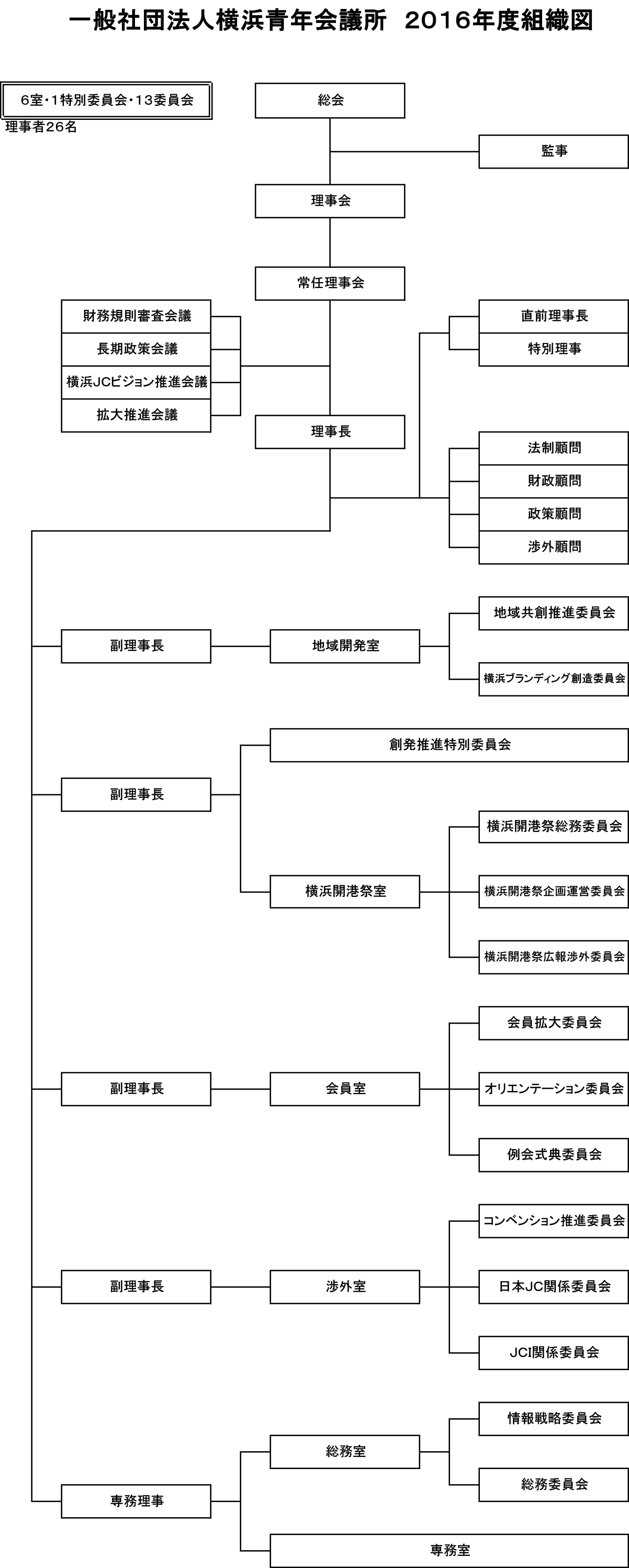 総務委員会は、会員情報を管理し定款及び諸規定の運用並びに改正後の対応等を担当することから組織運営の基盤を担う委員会として位置づけられます。会員情報の管理は、総会や諸会議等における意思決定の根幹である為、適正且つ的確な管理に努めて参ります。諸会議の運営においては、青年会議所の全ての活動は諸会議を経なければ実現できず、また諸会議にて審議可決された議案の範囲内でしか事業を行うことが出来ないことを意識し、横浜青年会議所が行う活動が成功に繋がるために、諸会議において活発な意見交換がなされるよう環境整備に努めます。その他、これまでの歴史や実績により形作られた定款及び諸規則の核心部分を引き継ぎつつ、時代に沿って新たに制定された制度や法令等を必要に応じて横浜青年会議所の定款及び諸規則に適用し、時代に適合した組織運営が為されるよう、定款、諸規定の管理・運用を適切に行います。2016年度の運営テーマである「創発」の実現のためには、確固たる組織の確立が不可欠です。これらの活動を通じて、総務委員会がルールの遵守を体現し、会員への周知を図る事で会員のルール遵守の意識向上を確固たる組織の確立に繋がるよう努めて参ります。