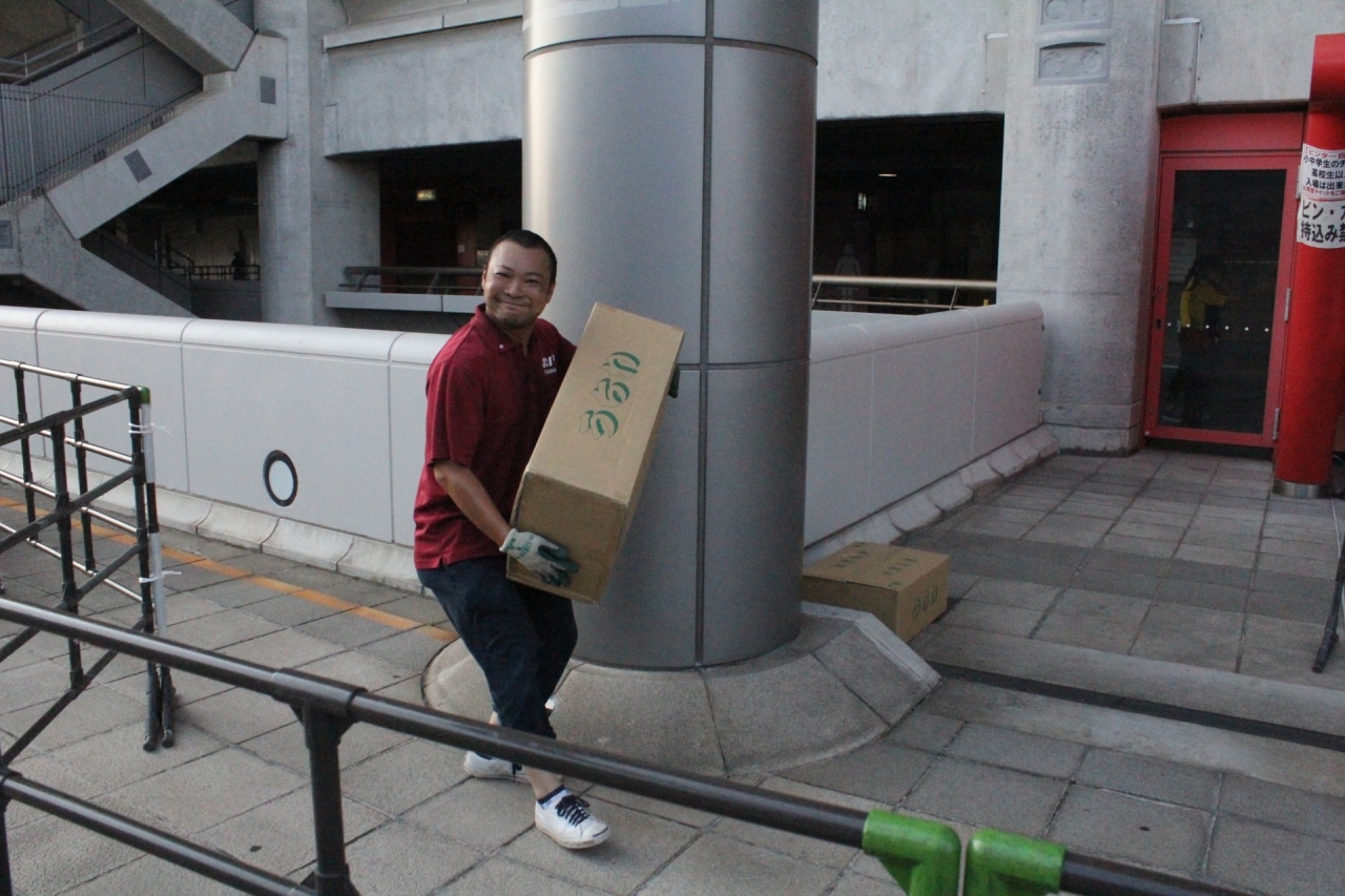 来場者の方にうちわを配布し、ハーフタイムには横断幕と共にグラウンドを一周しました!