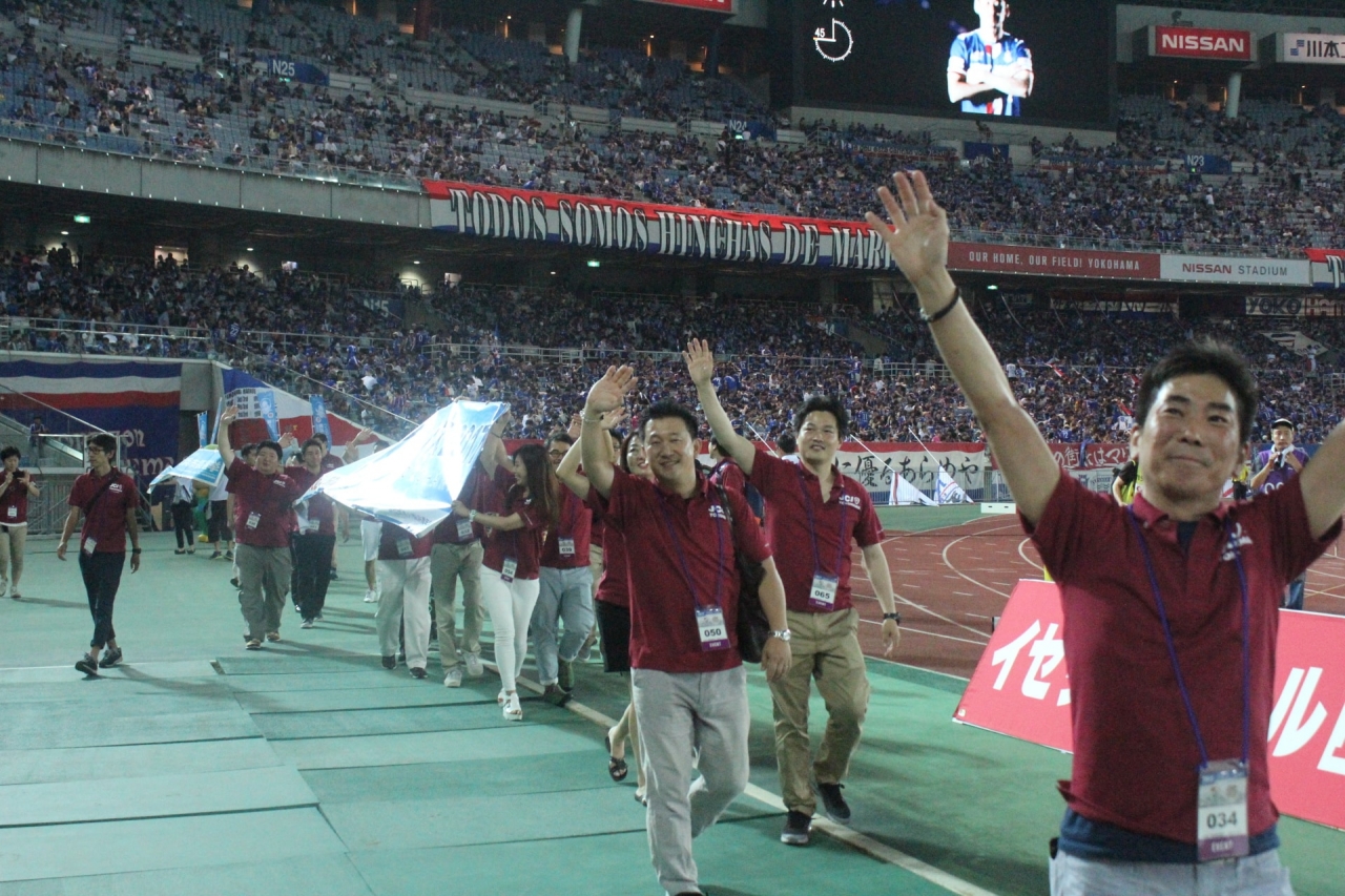 日産スタジアムで開催されていた横浜F・マリノス対サンフレッチェ広島戦において、サマーコンファレンス2017のPRが行われました。