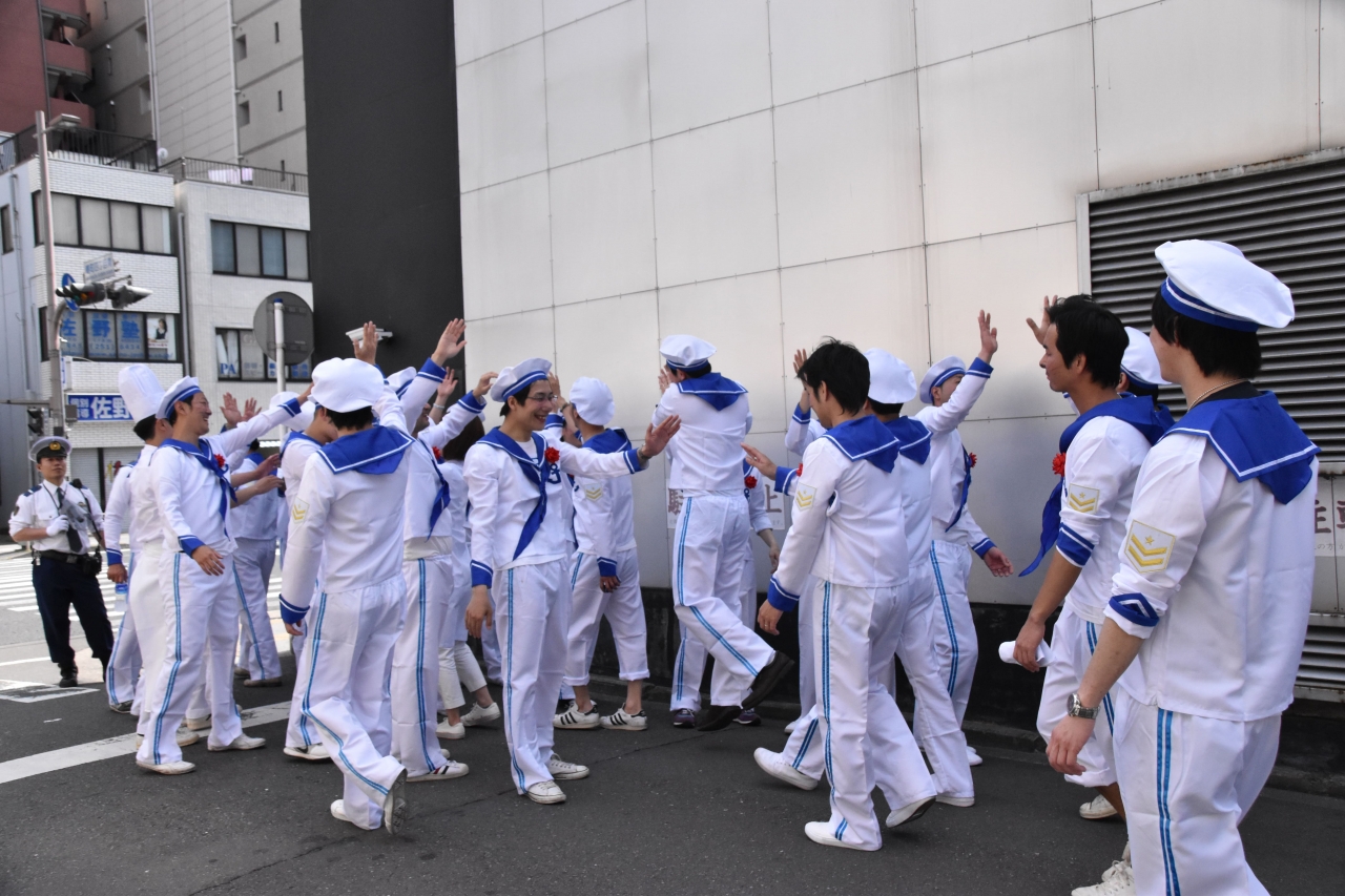 当日は38万人もの横浜市民が沿道で声援を送る中、(一社)横浜青年会議所は水夫に仮装した新入会員の