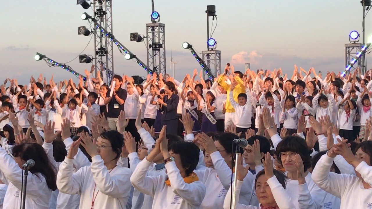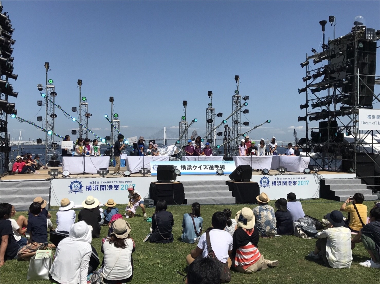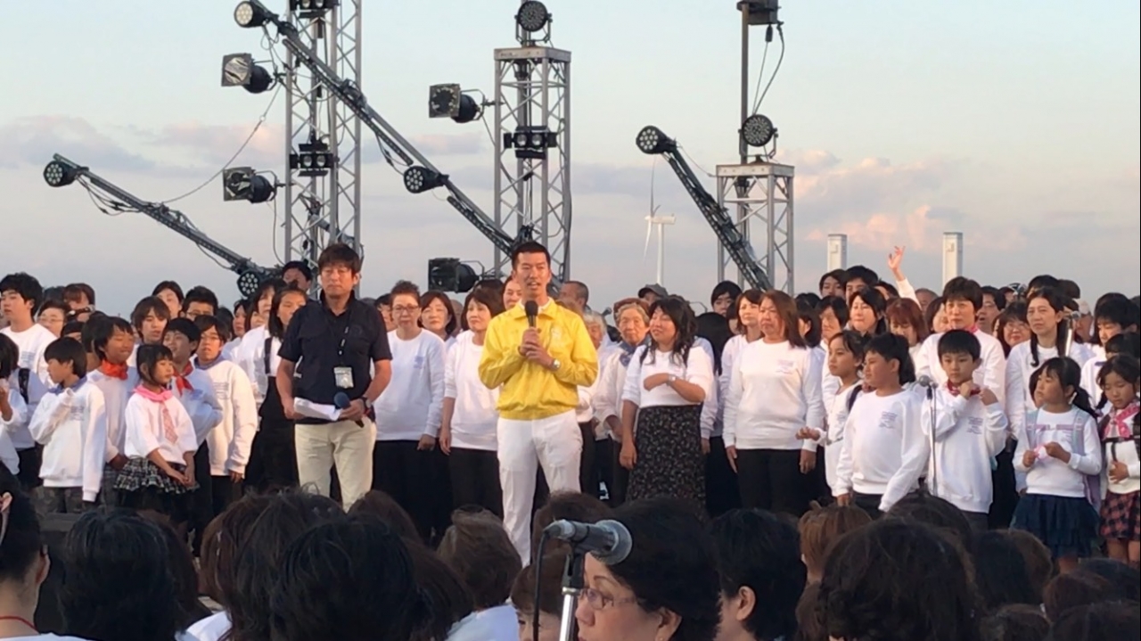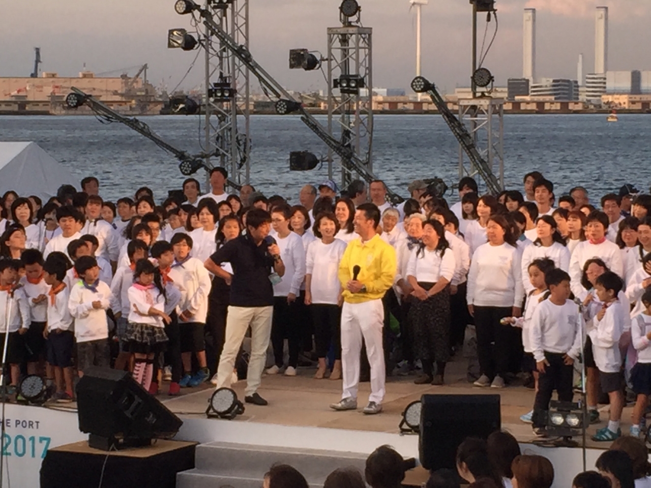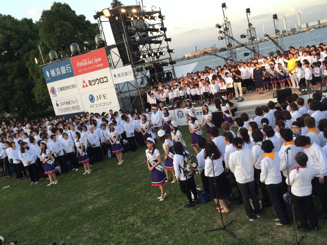 ステージ上で、横浜開港祭といえば「ドリーム・オブ・ハーモニー」でのスマイリングヨコハマの大合唱や