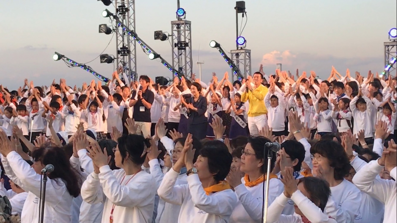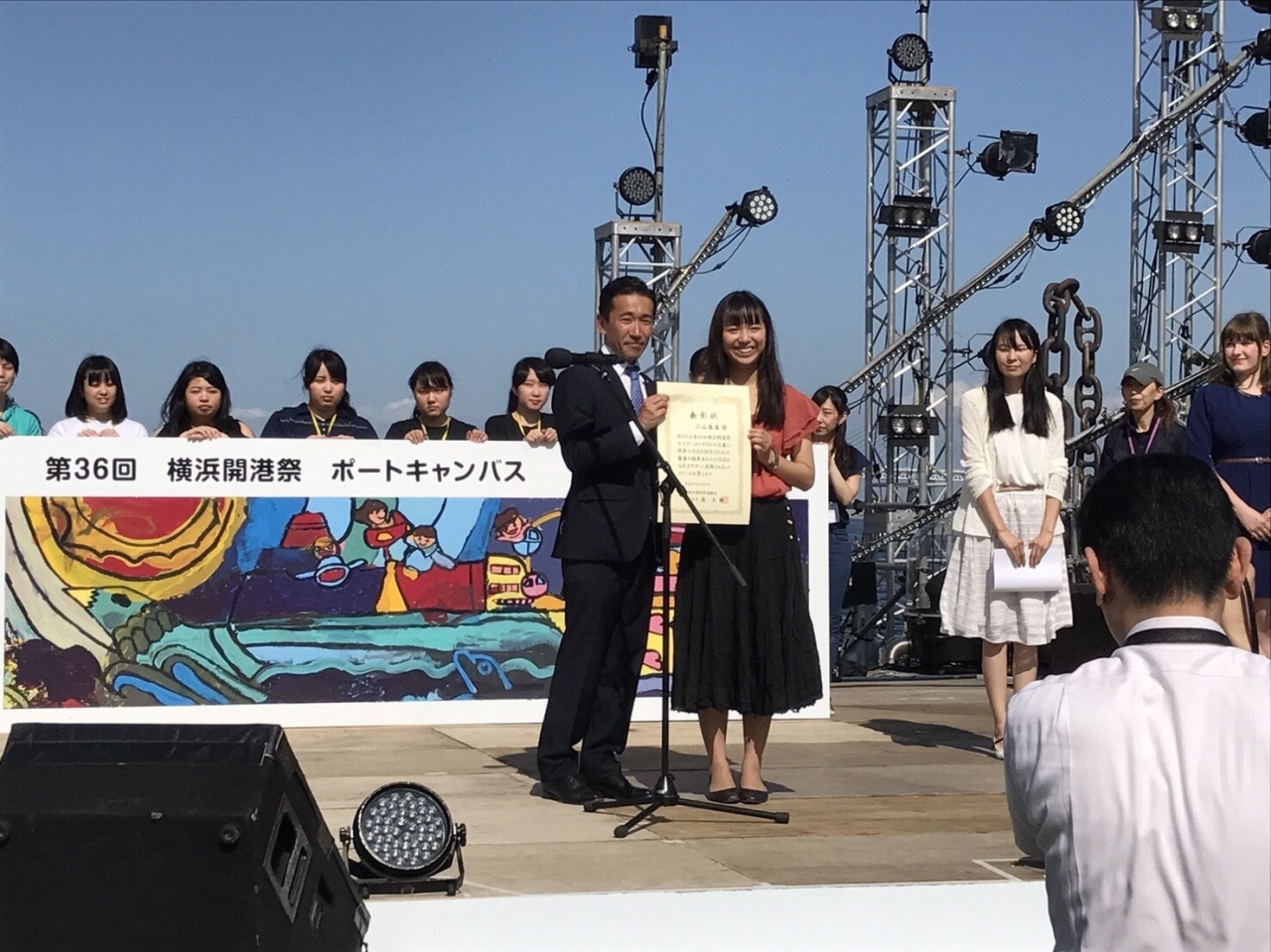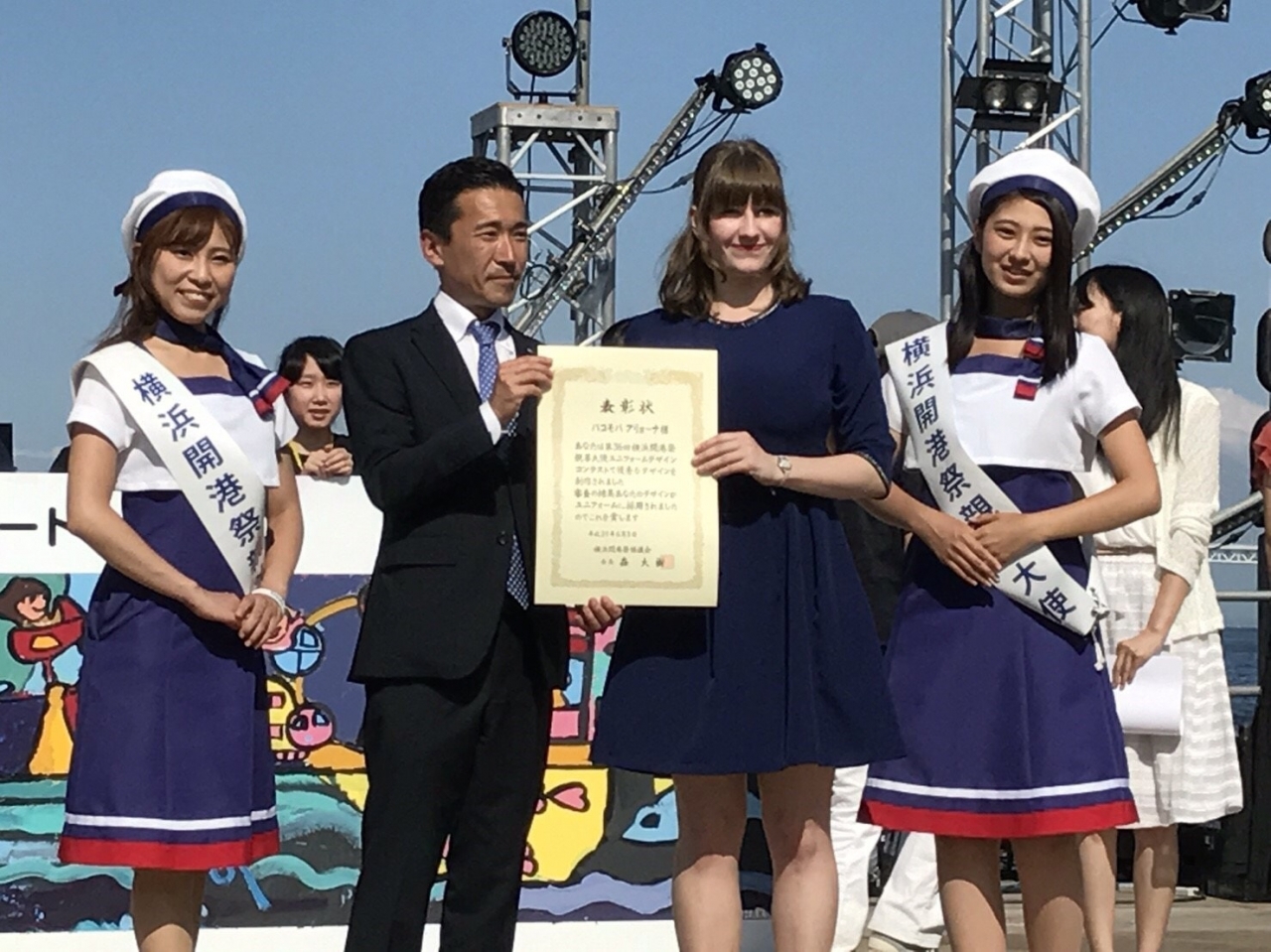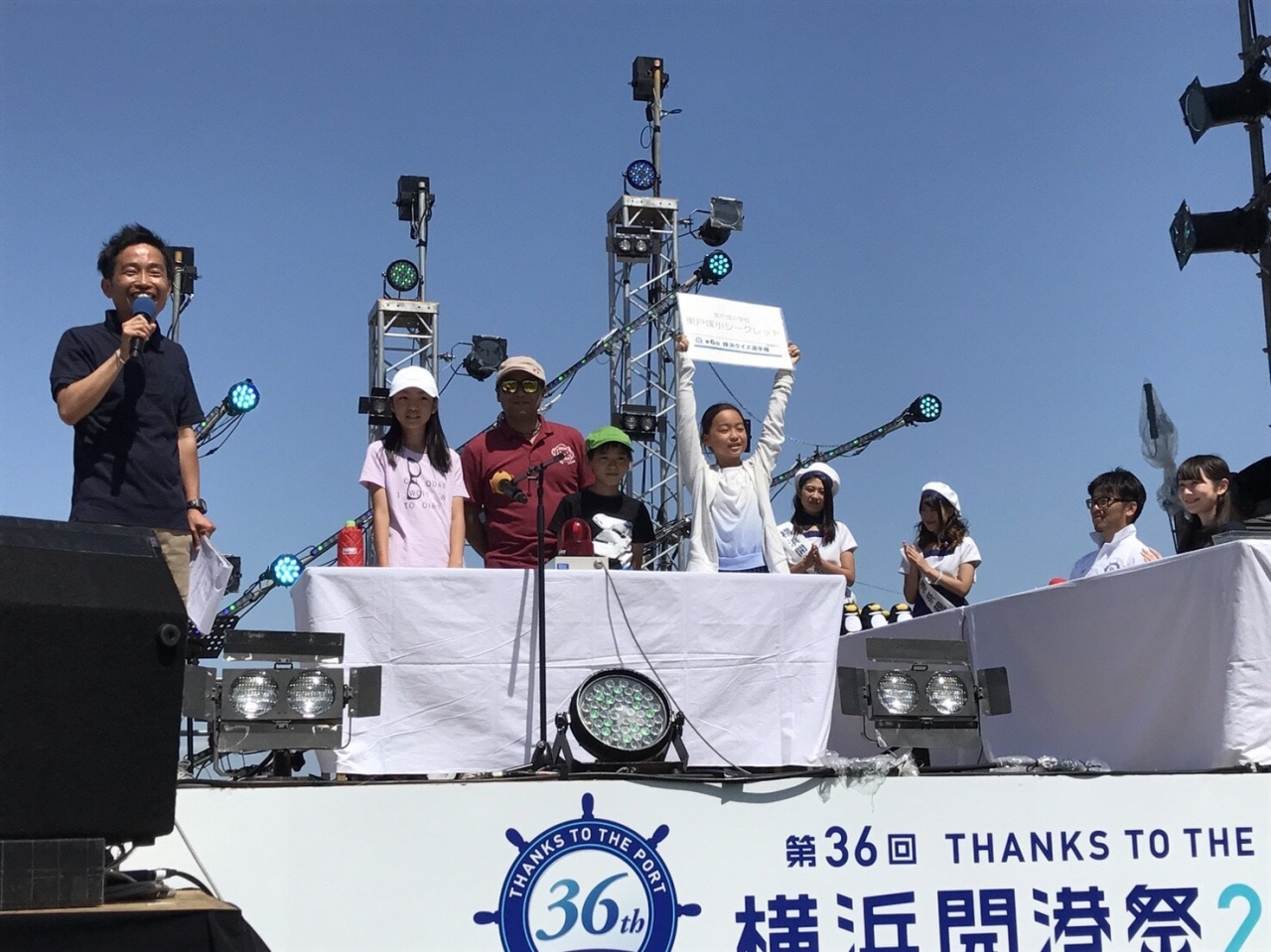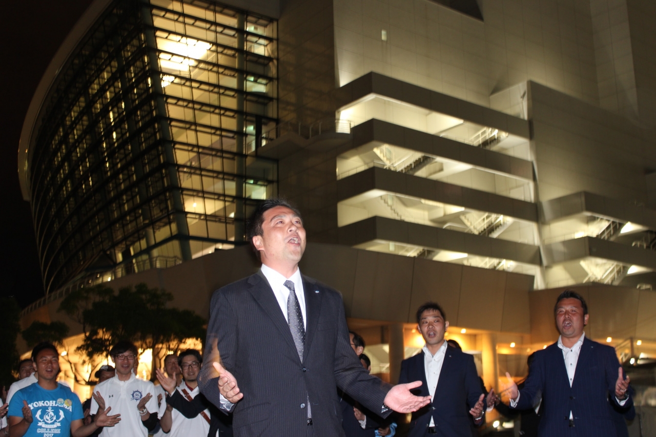 ステージ上で、横浜開港祭といえば「ドリーム・オブ・ハーモニー」でのスマイリングヨコハマの大合唱や