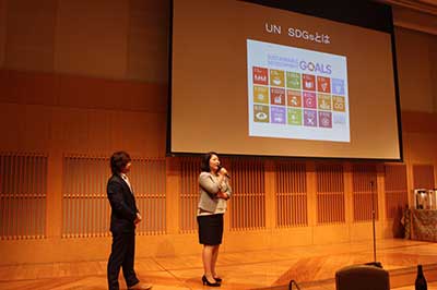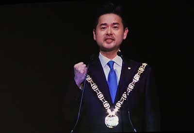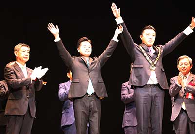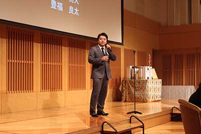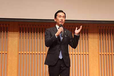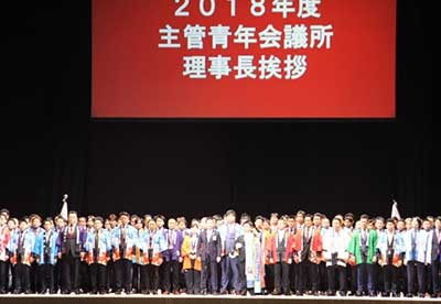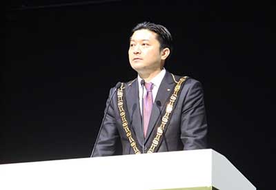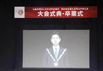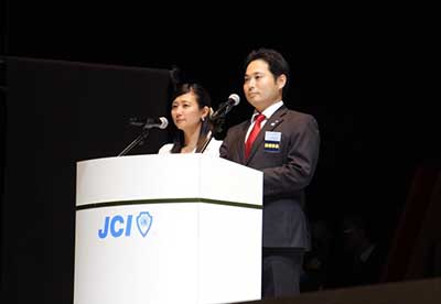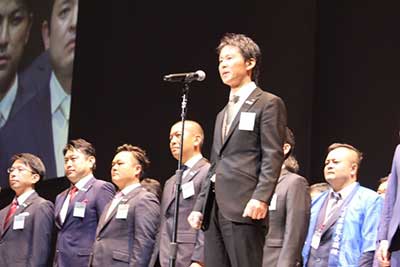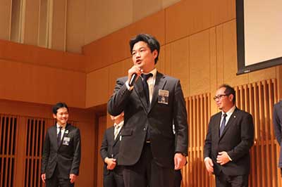 「式典の部」では(公社)日本青年会議所 青木照護会頭から、次年度会頭予定者 池田祥護君へプレジデンシャルリースの伝達が行われ、本年度の運動総括及び2018年度への抱負が語られました。