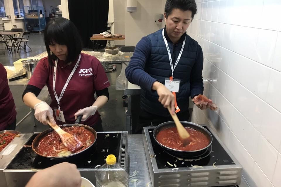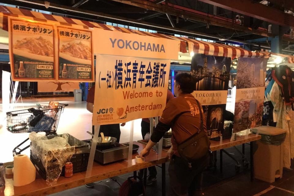 ジャパンナイトの横浜JCブースでは『横浜発祥ナポリタン』を提供し、多くの海外メンバーとの交流を深めることができました。