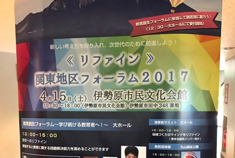 伊勢原市民文化会館で公益社団法人日本青年会議所関東地区協議会にて関東地区フォーラム2017が開催されました。教育創生フォーラムでは講師に文部科学副大臣の義家弘介氏、㈱リバネスの最高知識責任者の長谷川和弘氏、