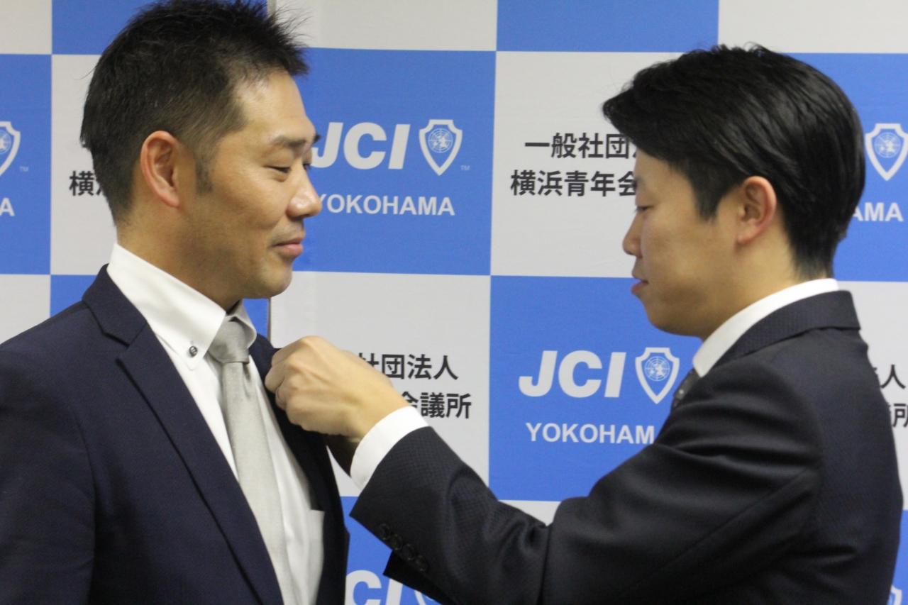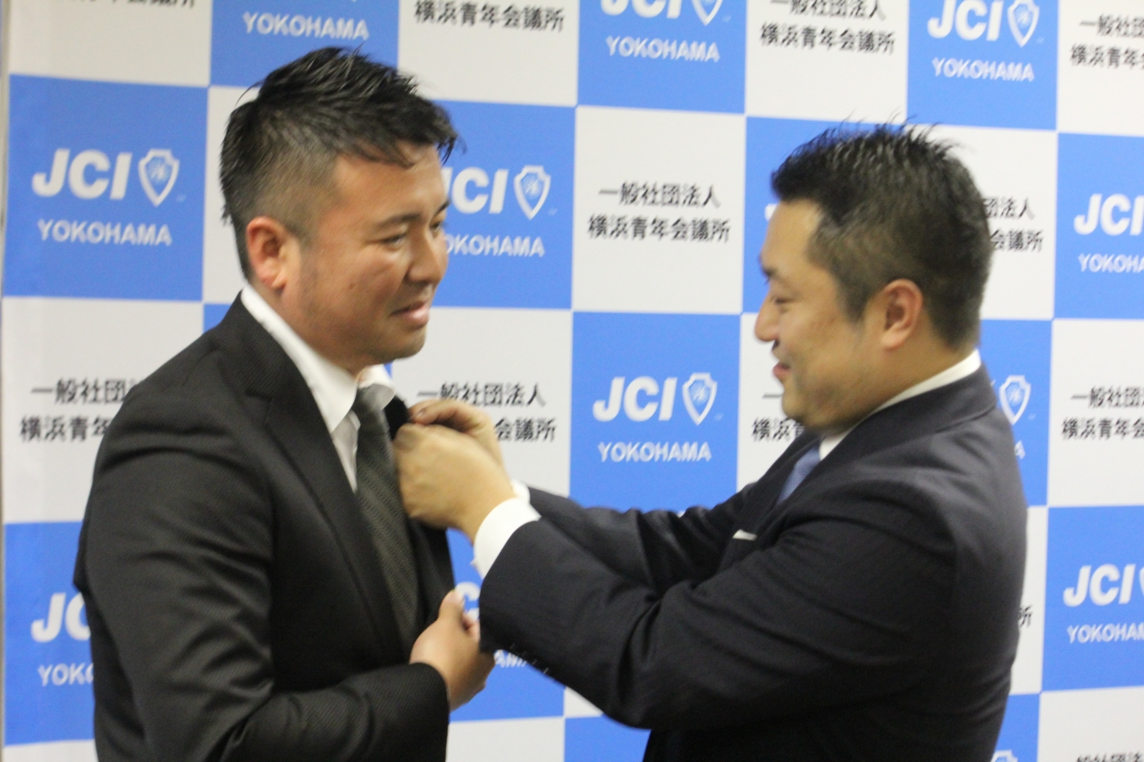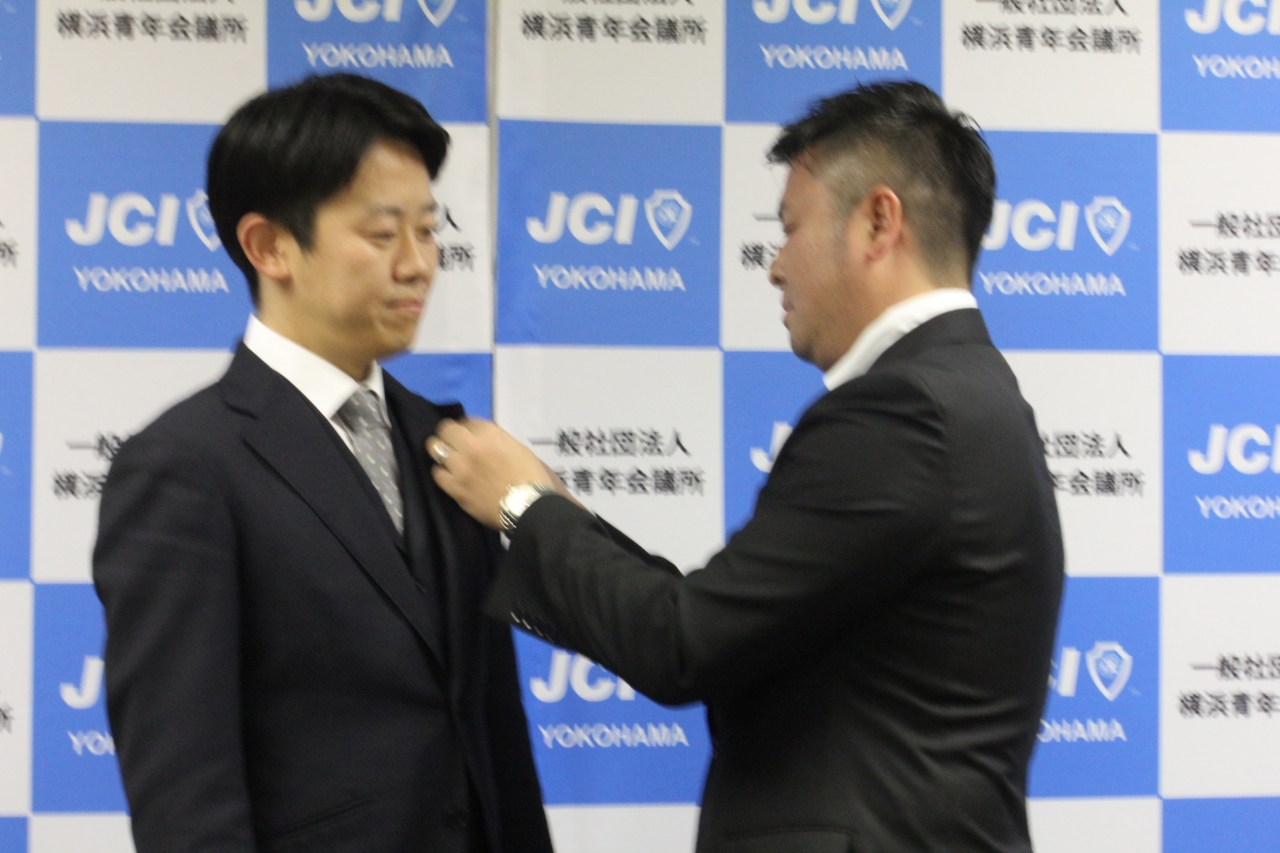 また、終了後には本年度役員から次年度役員へのバッヂ授与が行われました。