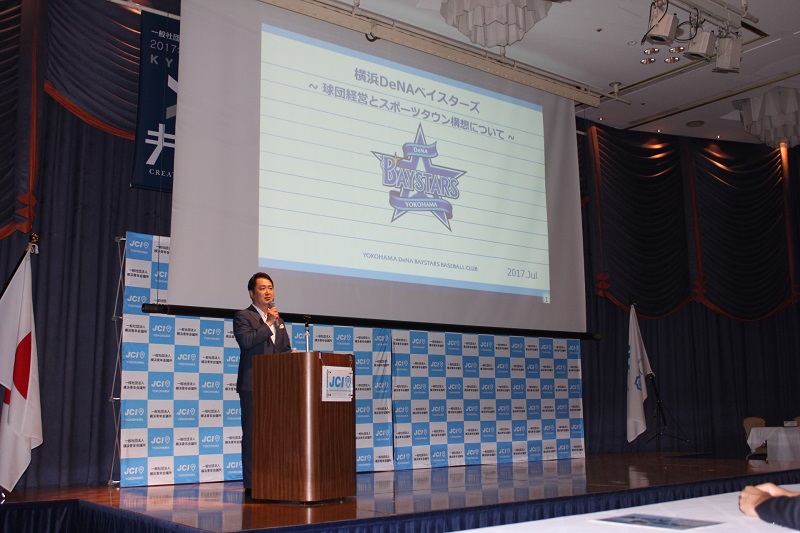 1部講演では、2016年に株式会社横浜DeNAベイスターズ新社長に就任された代表取締役社長 岡村信悟氏をお迎えし、横浜におけるスポーツタウン構想についてお話し頂きました。