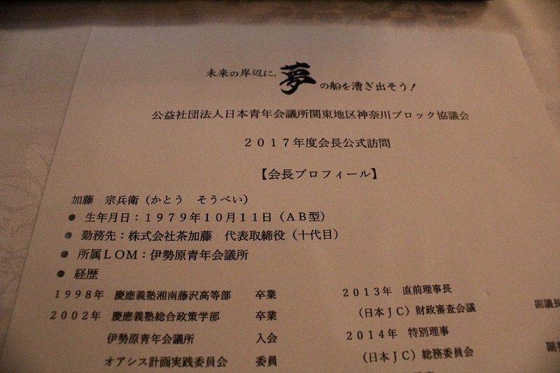 公益社団法人日本青年会議所関東地区神奈川ブロック協議会 加藤宗兵衛会長が横浜に公式訪問され、夢を持ち・夢を作るというビジョンのもと、年間の主な事業についてご説明頂きました。
