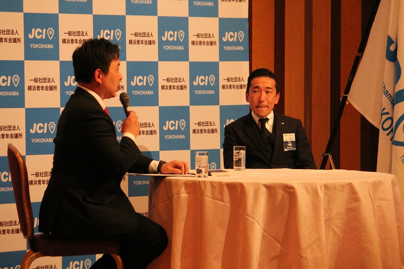 第2部では、まちづくりビジョン、会員拡大ビジョン、人材育成ビジョンについて、横浜青年会議所 森 大樹理事長と神奈川ブロック 加藤 宗兵衛会長の対談が行われました。