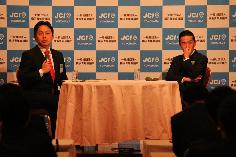 第2部では、まちづくりビジョン、会員拡大ビジョン、人材育成ビジョンについて、横浜青年会議所 森 大樹理事長と神奈川ブロック 加藤 宗兵衛会長の対談が行われました。