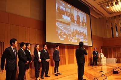 「式典の部」では(公社)日本青年会議所 青木照護会頭から、次年度会頭予定者 池田祥護君へプレジデンシャルリースの伝達が行われ、本年度の運動総括及び2018年度への抱負が語られました。