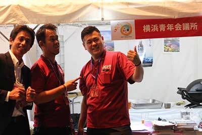 その後の大懇親会では各地LOMが大集結し、大きな盛り上がりを見せました。横浜JCはハマポーク、ハマビールを提供し、それぞれ交流を深めることができました。