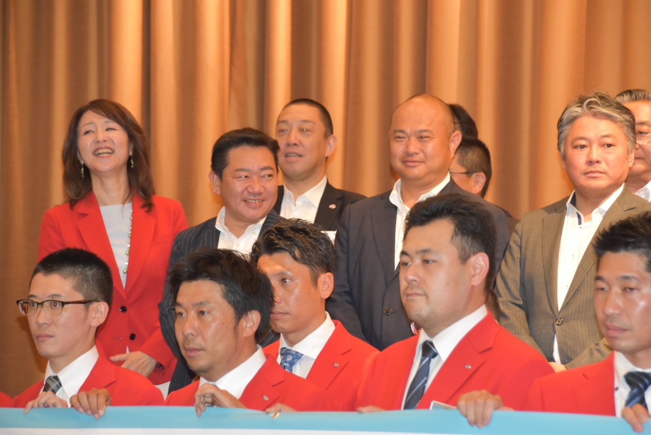 「伝説の赤ジャケ」を着て、ご挨拶をさせて頂きました。