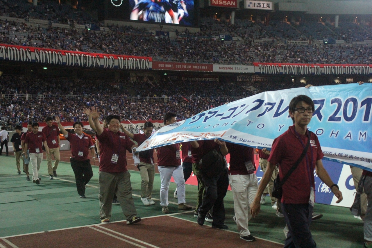 日産スタジアムで開催されていた横浜F・マリノス対サンフレッチェ広島戦において、サマーコンファレンス2017のPRが行われました。