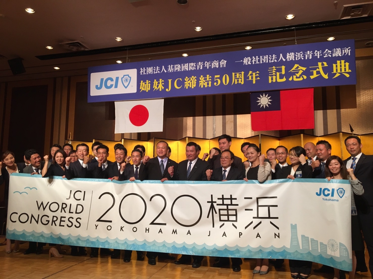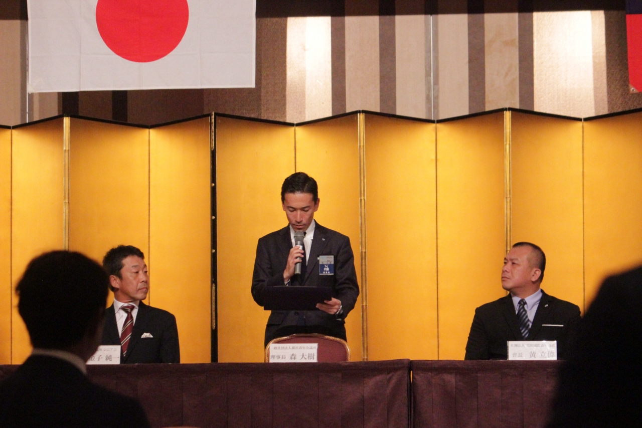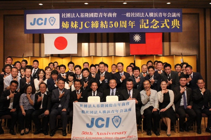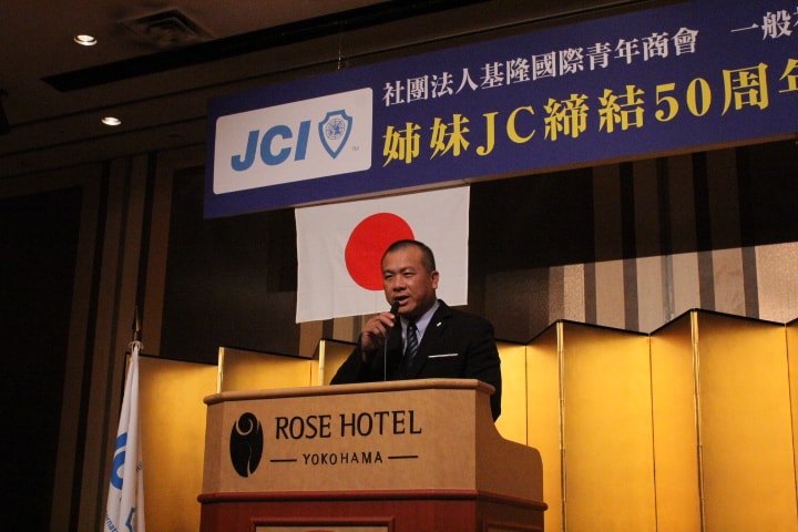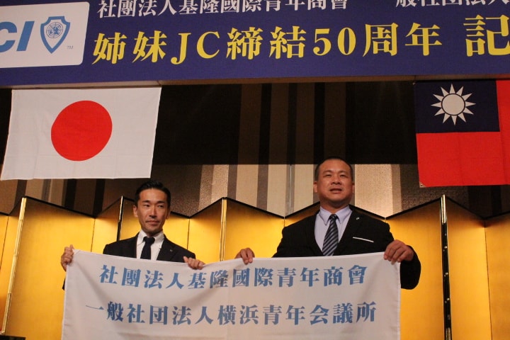 基隆姉妹JC締結50周年記念式典並びに調印式がローズホテルで行われました。横浜青年会議所 森大樹理事長の挨拶から始まり、社團法人基隆國際青年商會 黃立偉會長 、横浜青年会議所シニア会 金子純一会長、基隆國際青年商會特友會 洪結雄主席の挨拶を頂きました。確認書調印式、確認書読上げ・交換、記念品を交換し、改めて基隆JCと横浜JCの友好の絆を深めました。。