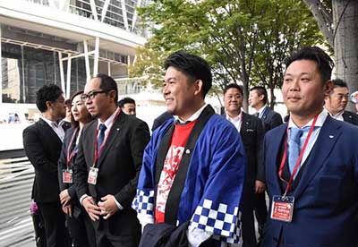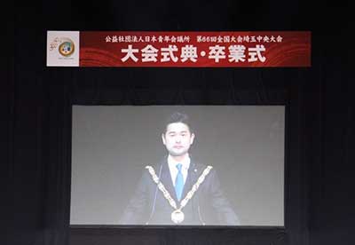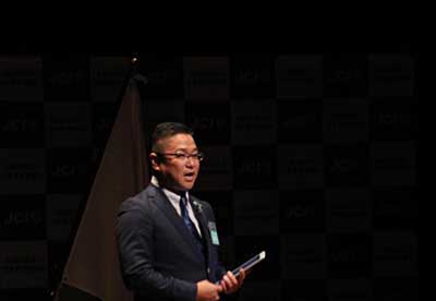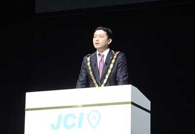「式典の部」では(公社)日本青年会議所 青木照護会頭から、次年度会頭予定者 池田祥護君へプレジデンシャルリースの伝達が行われ、本年度の運動総括及び2018年度への抱負が語られました。