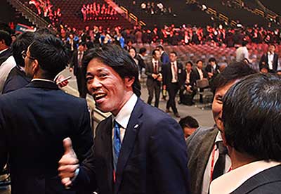 さいたまスーパーアリーナ、メインアリーナにて大会式典が開催されました。