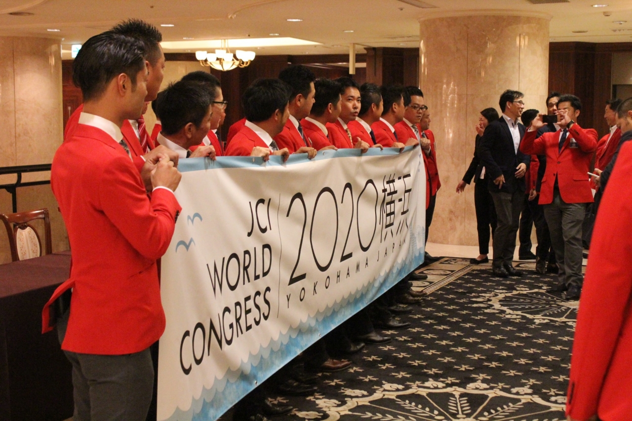 (一社)横浜青年会議所のメンバーは日本JCシニアクラブ懇親会にて、世界大会誘致のPRを