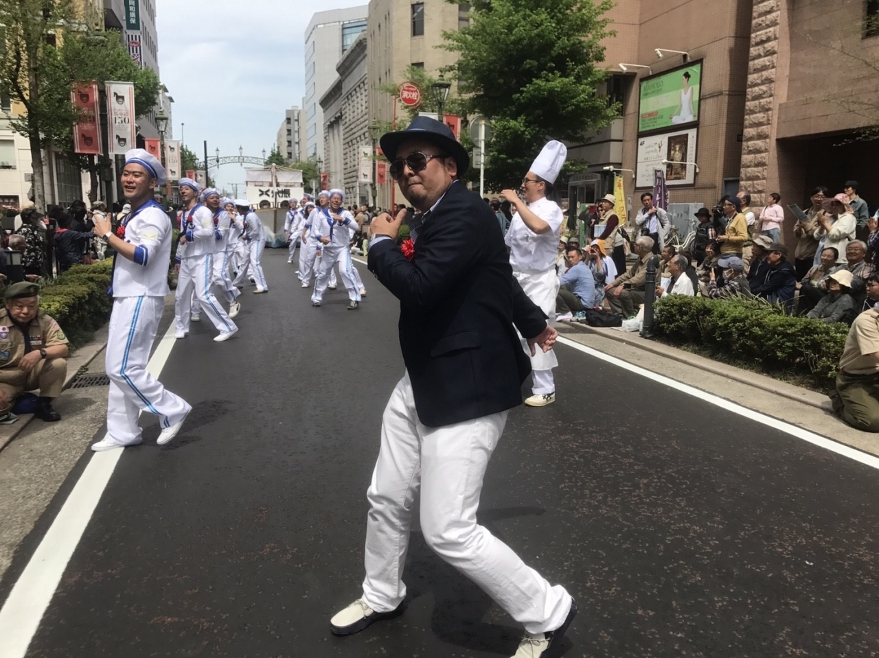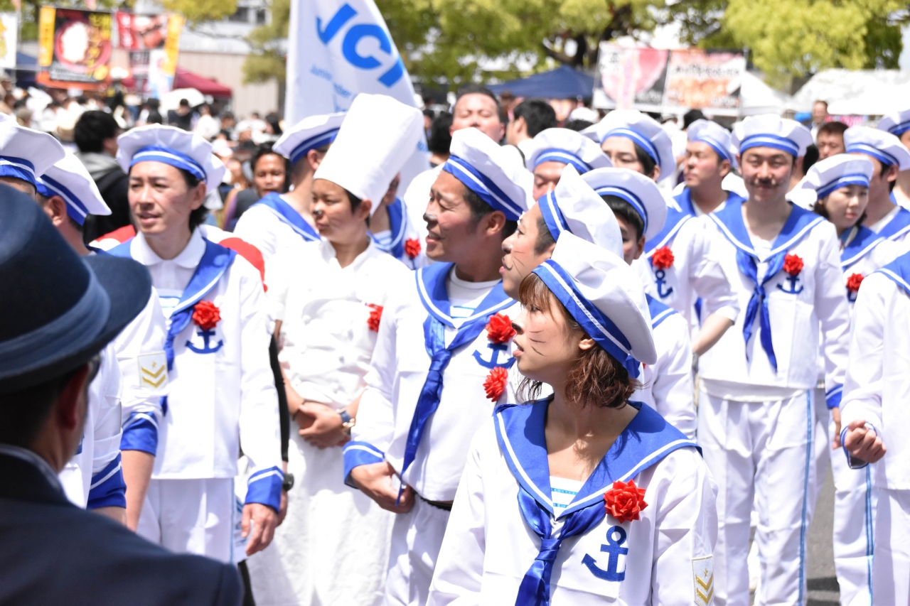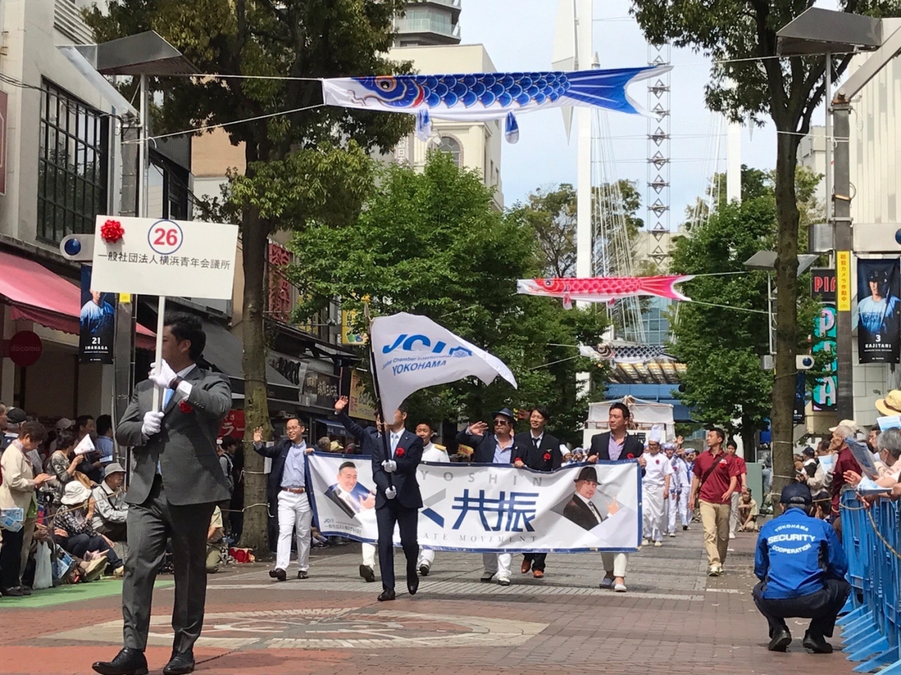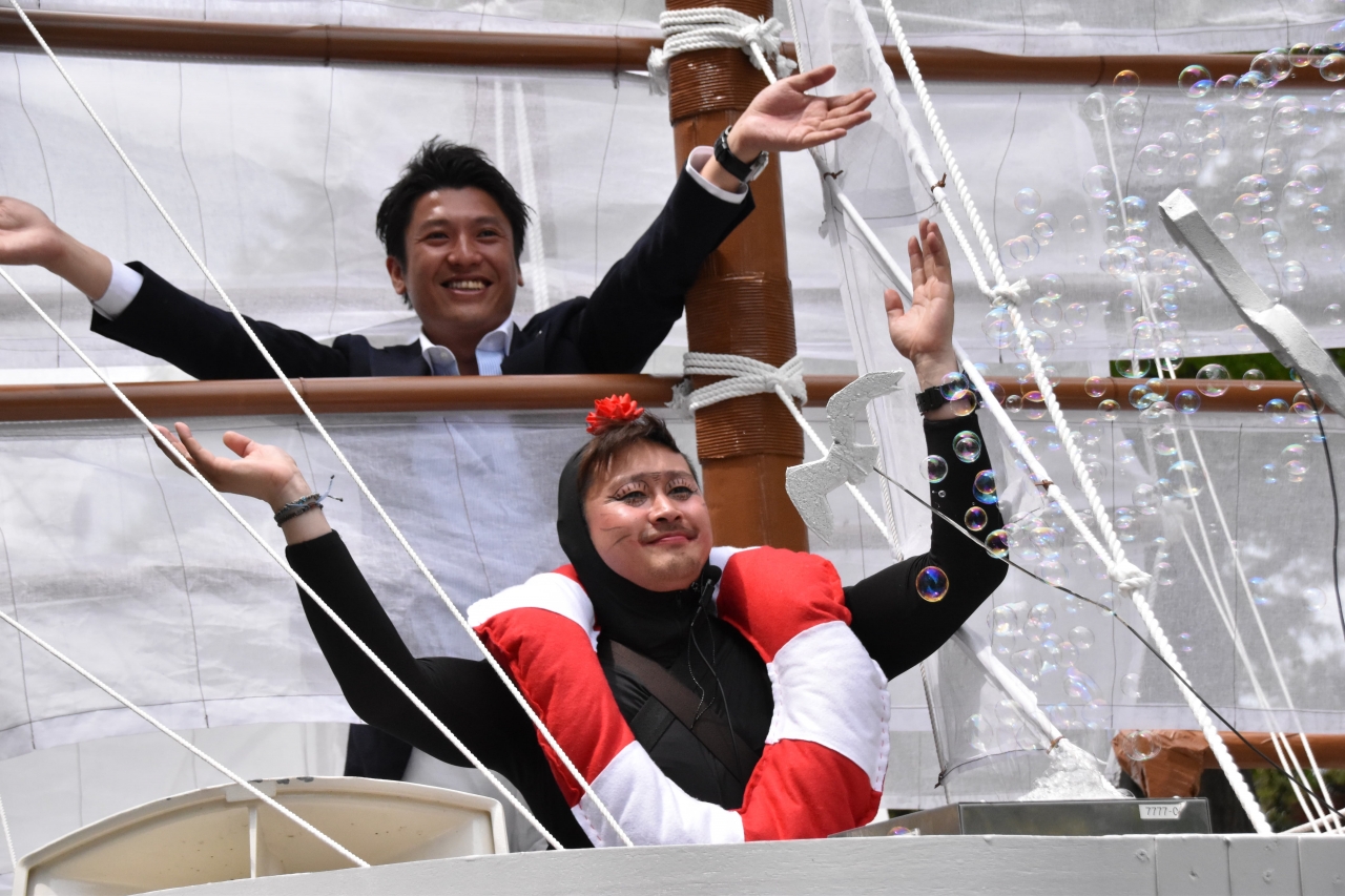 当日は38万人もの横浜市民が沿道で声援を送る中、(一社)横浜青年会議所は水夫に仮装した新入会員の