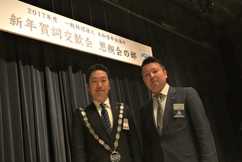 一般社団法人大和青年会議所の賀詞交換会に参加させて頂き、第39代田邊義文理事長にご挨拶をさせて頂きました。