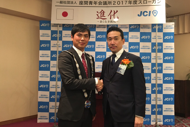一般社団法人座間青年会議所の賀詞交換会に参加させて頂き、第38代竹田陽介理事長にご挨拶をさせて頂きました。