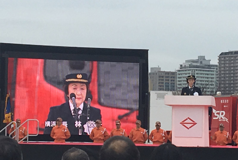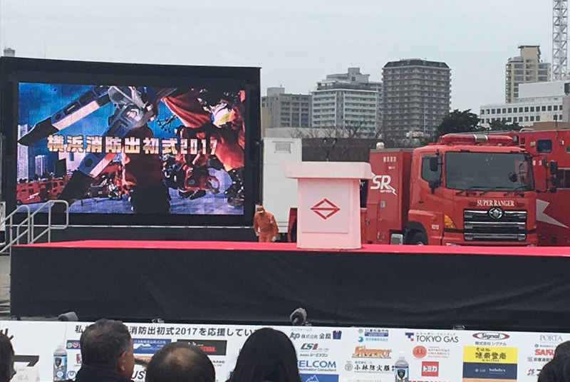 横浜赤レンガ倉庫で行われた「横浜消防出初式」にお招きいただき、出席させていただきました。