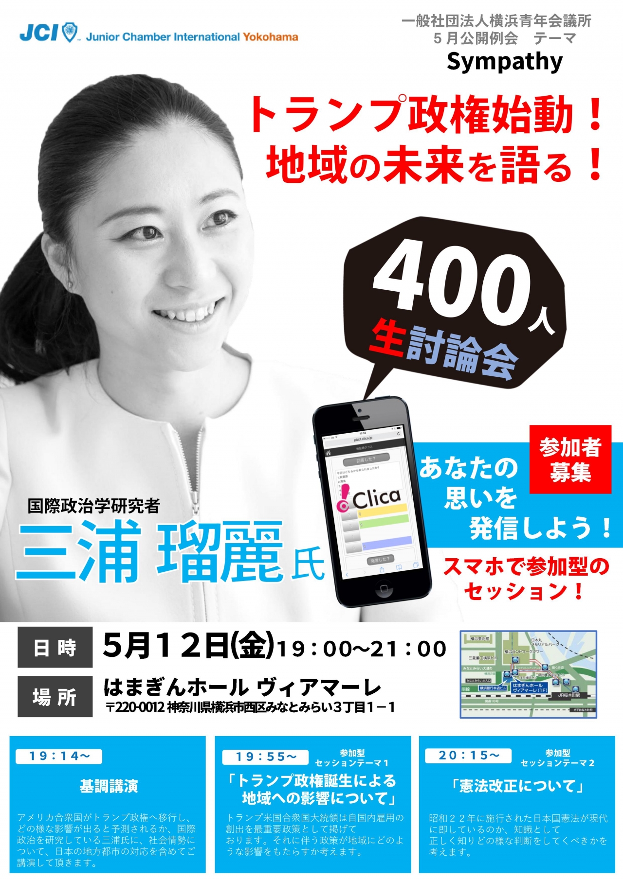 ☝5月公開例会でClicaを活用して、スマホで参加型のセッションを実現する為に!