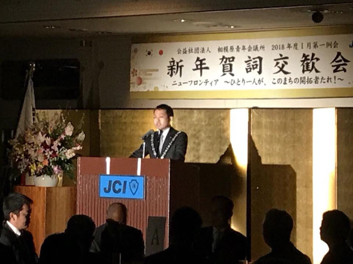 湘南クリスタルホテルにて、(一社)藤沢青年会議所の新年賀詞交歓会に参加し、新年の挨拶をさせて頂きました。