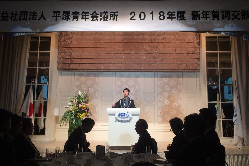 ホテルサンライズガーデンにて、(公社)平塚青年会議所の新年賀詞交歓会に参加し、新年の挨拶をさせて頂きました。