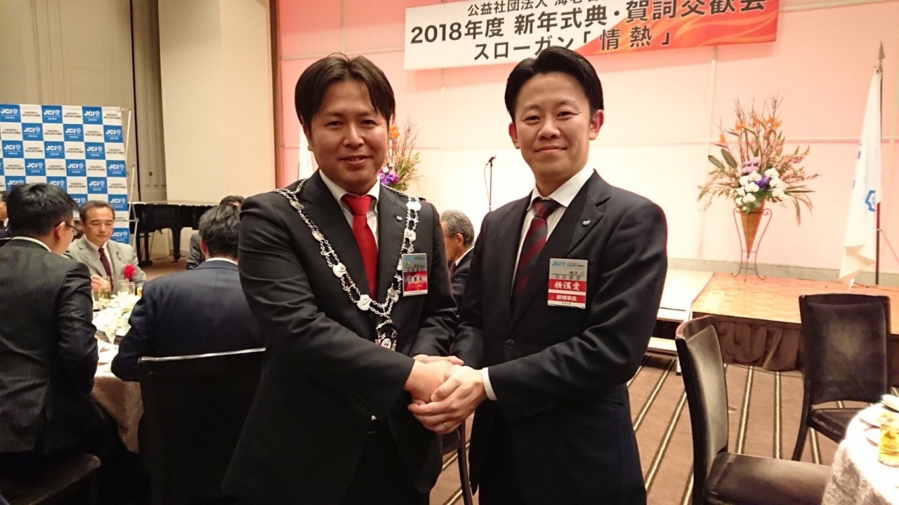 (公社)厚木青年会議所の賀詞交換会に参加させて頂き、第50代向島史朗理事長にご挨拶をさせて頂きました。