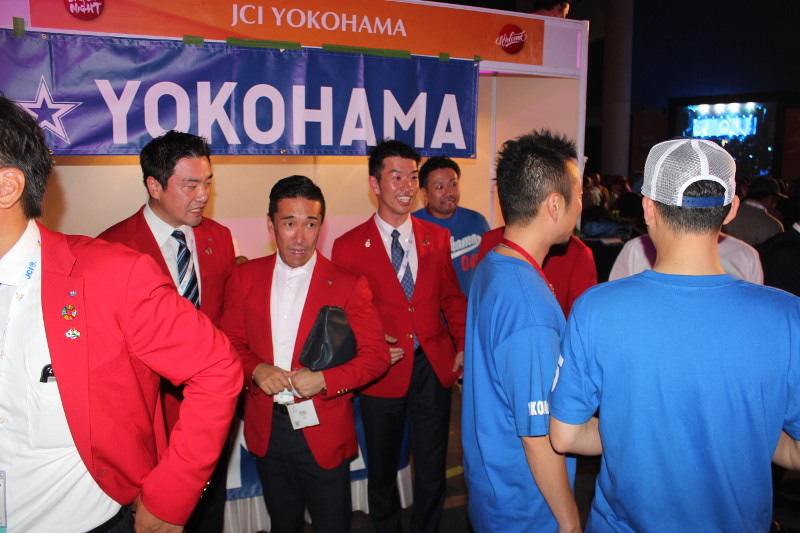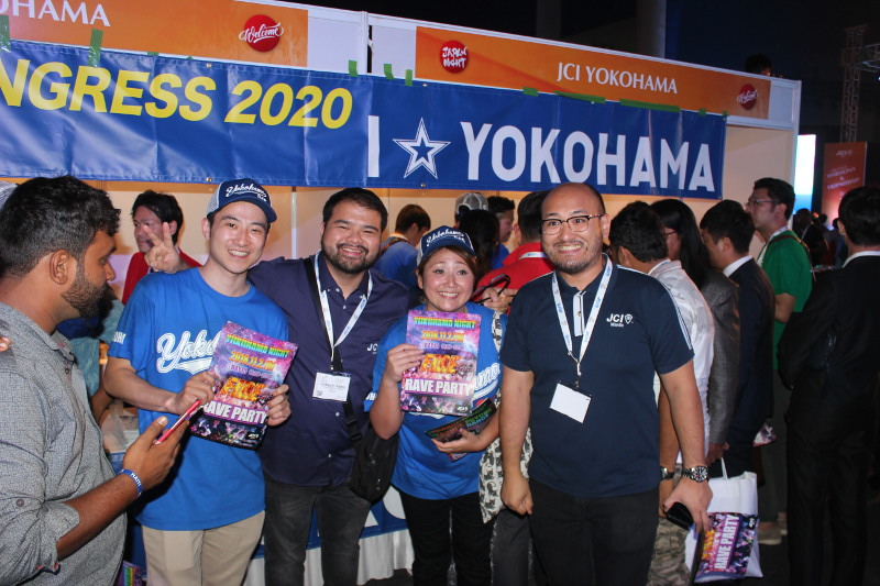 「ジャパンナイトが開催されました。横浜JCブースでは唐揚げとレモンサワーで皆様をおもてなし。併せて世界会議横浜誘致に向けたPRも行いました」