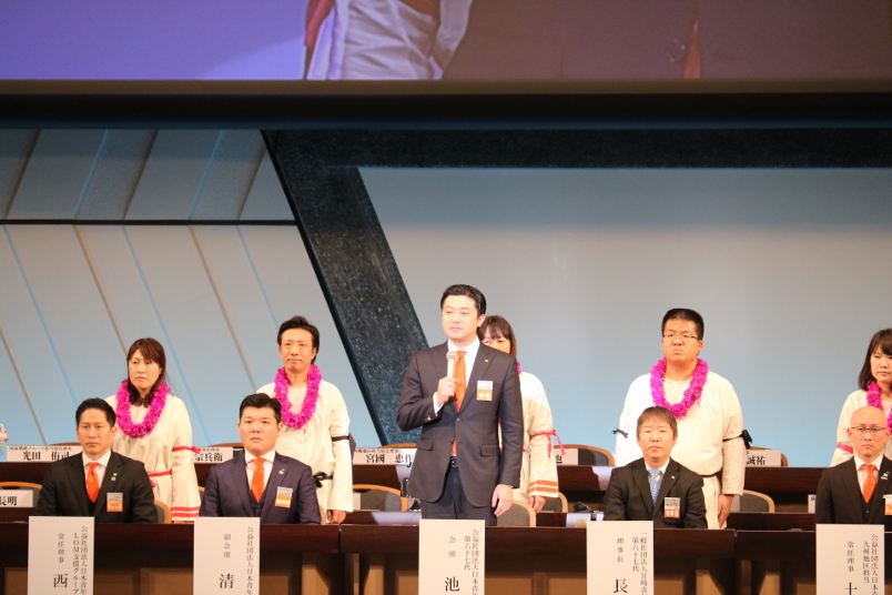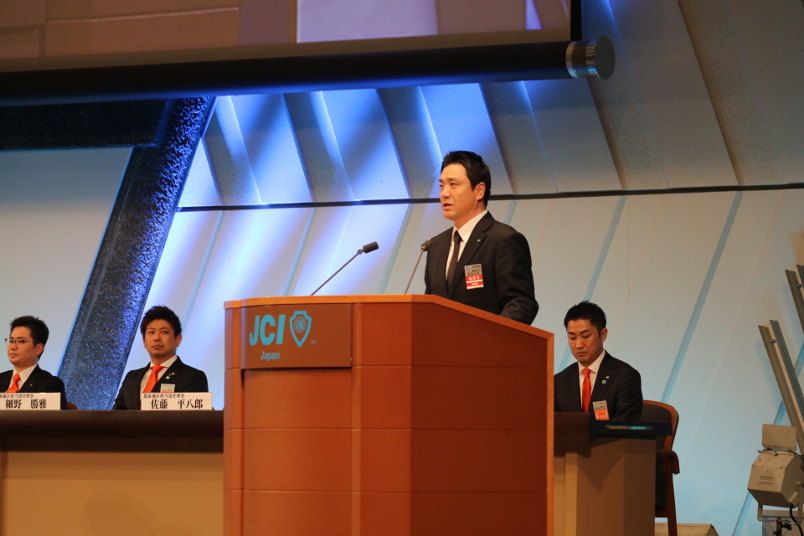 【総会】総会にて(一社)横浜青年会議所を代表し草島理事長が登壇致しました。そして、(公社)日本青年会議所サマーコンファレンス2018の開催LOMとして、しっかりお支えさせて頂きますと力強く伝えました。