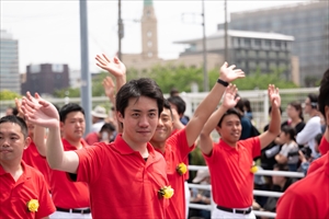 (一社)横浜青年会議所からは、野並理事長を始めとする理事メンバーが(一社)横浜青年会議所を広く市民に周知するため赤いジャケット姿でパレードに参加致しました。