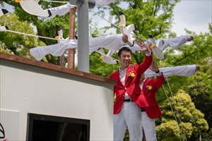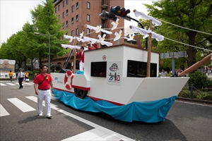また、西山委員長率いるオリエンテーション委員会から2019年度新入会員によって作成された船をモチーフとしたフロートと共にダンスを披露し、パレードを盛り上げました。